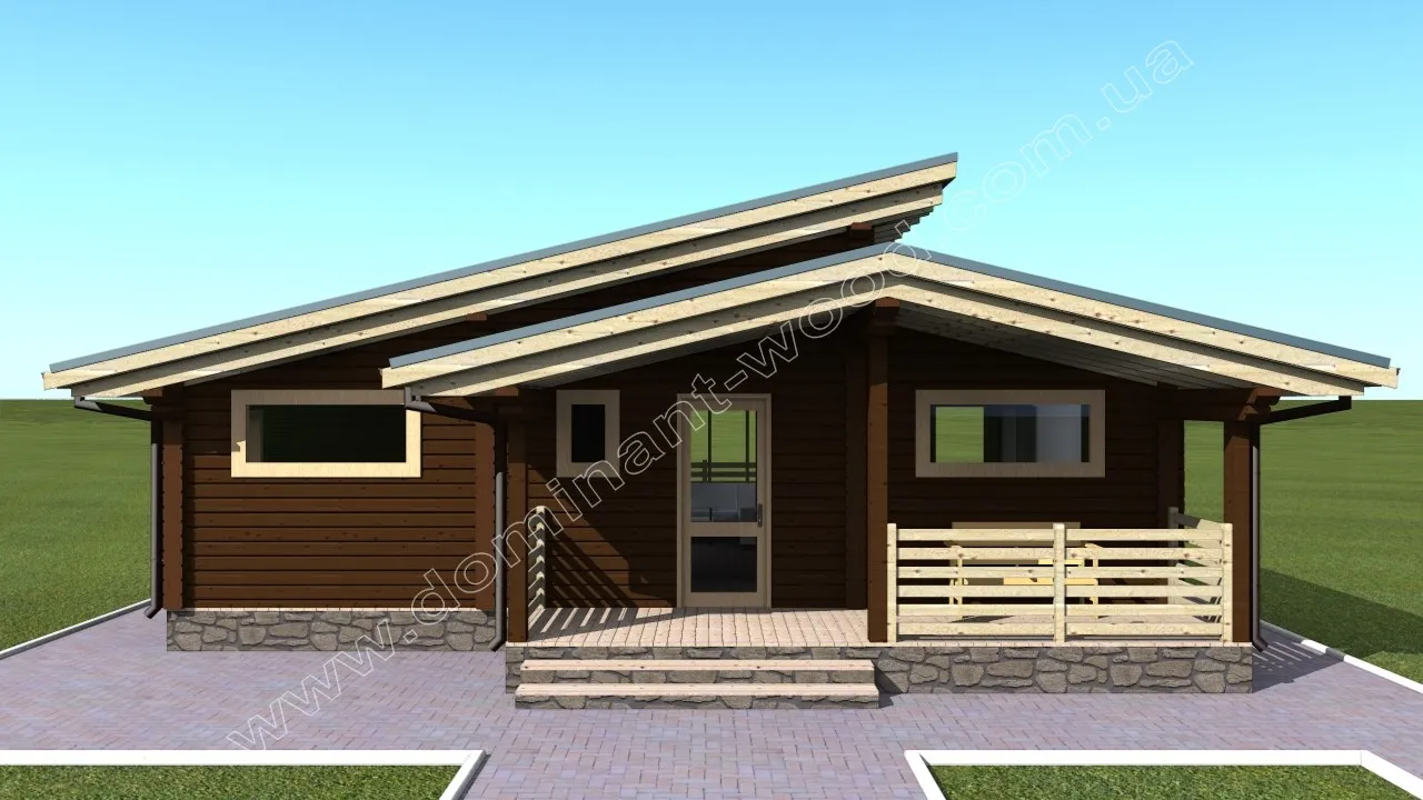 Одноповерховий котедж з сухого, профільованого бруса Арнеда обов’язково сподобається всім шанувальникам стилю модерн. Проект цього будинку є фантазійною композицію, в якій увагу акцентовано на окремих деталях. Абсолютно різні вікна квадратної, форми великих і маленьких розмірів, оригінальна «ламана» форма даху роблять проект Арнедо dominant-wood.com.ua/uk/proekty/549-arneda унікальним і неповторним дерев’яним будинком.