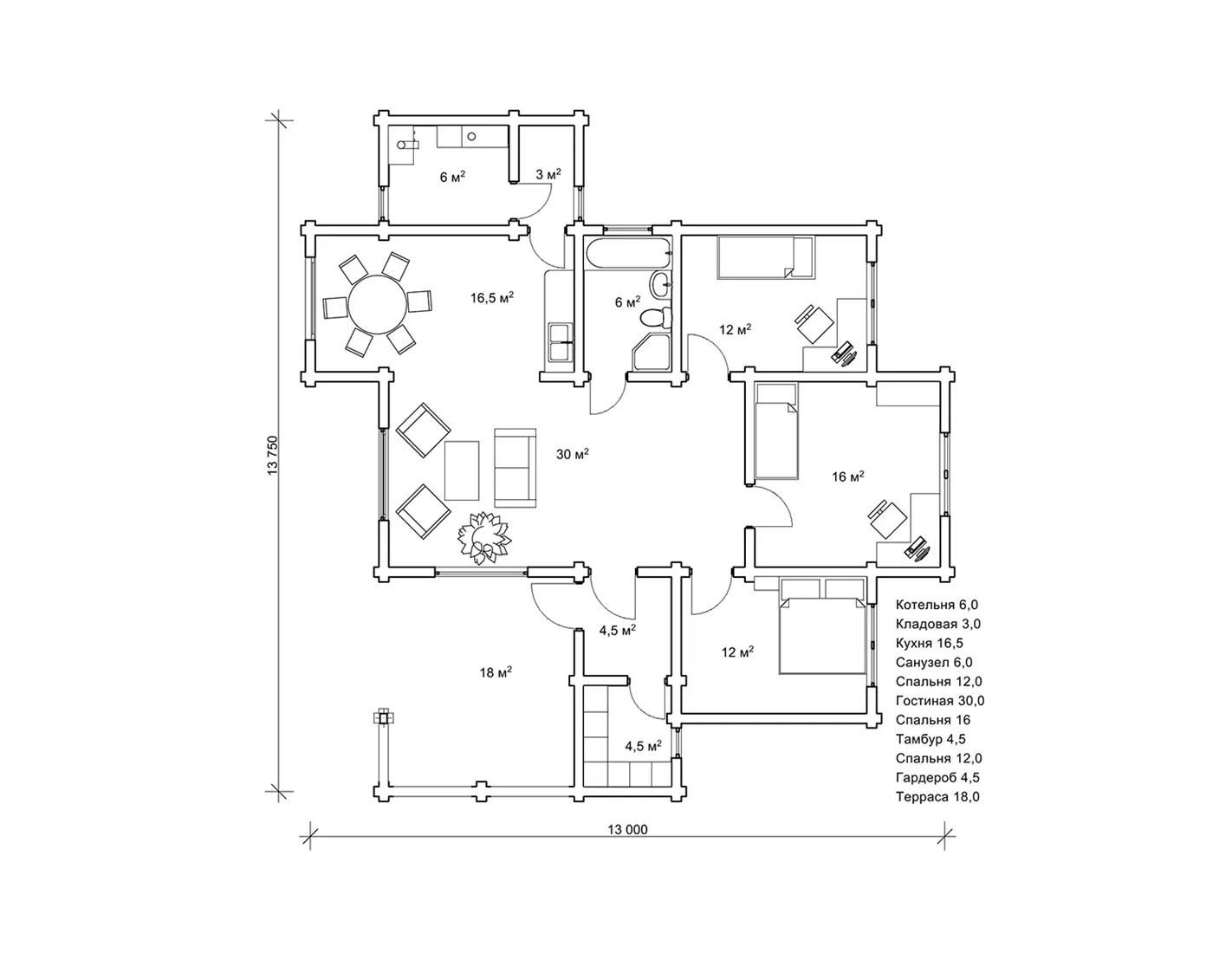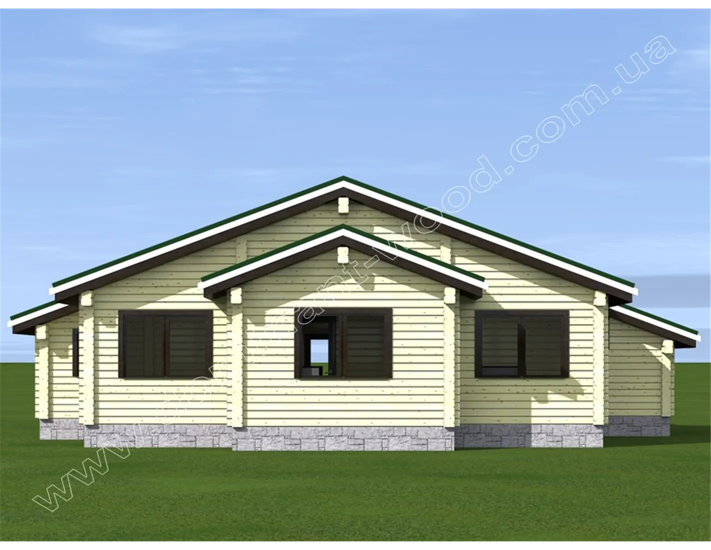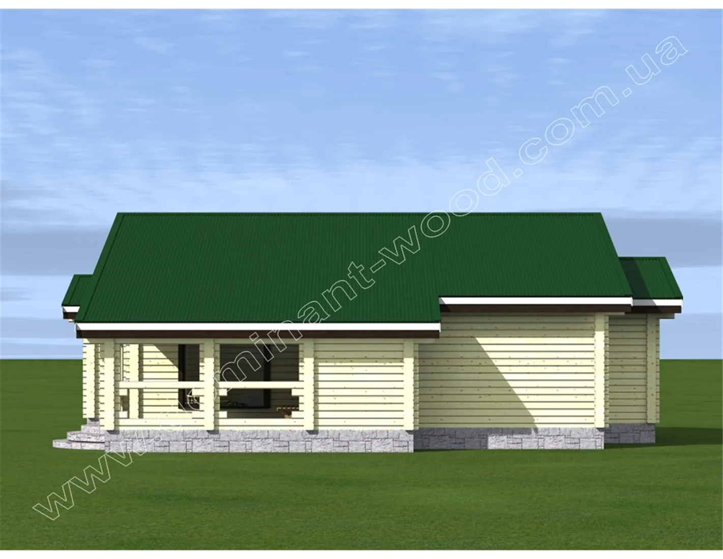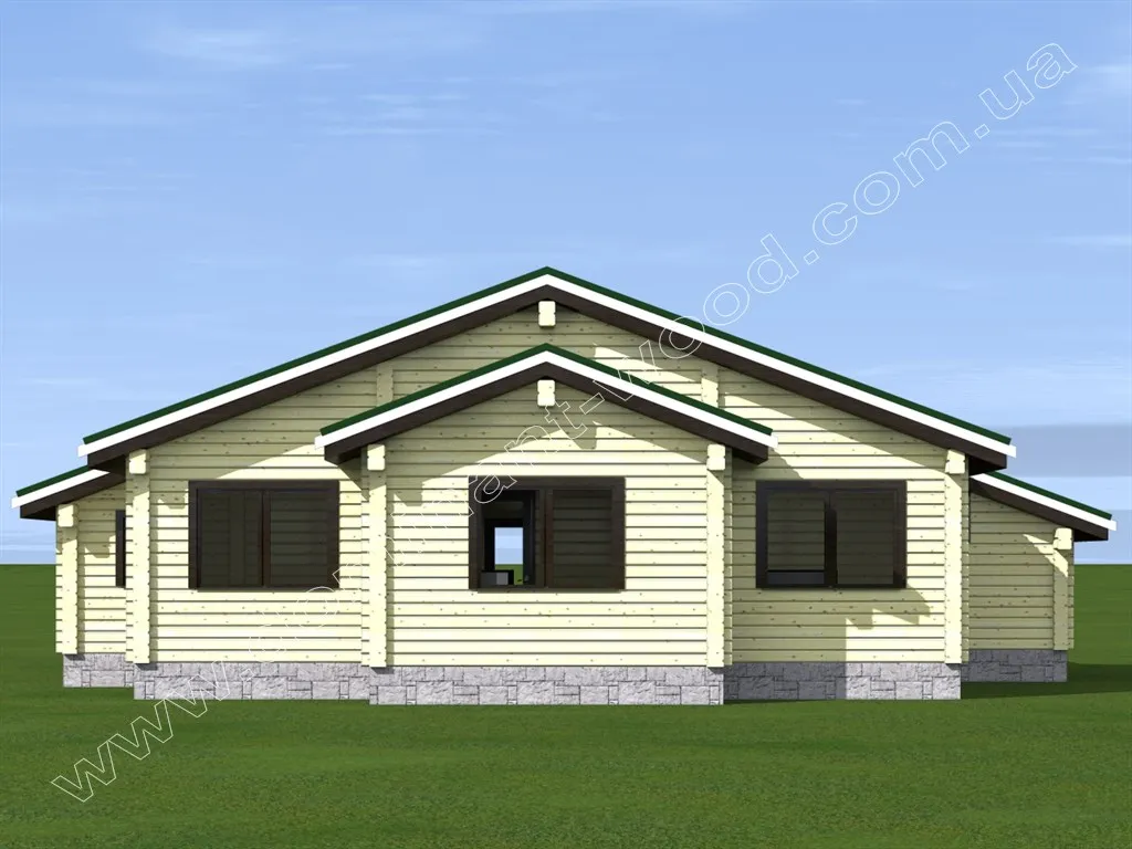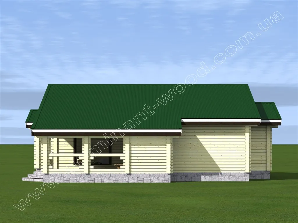 Одноповерховий дерев’яний будинок з терасою, трьома спальнями і котельнею «Гранль» виявився настільки популярним серед наших замовників, що на його основі ми створили кілька варіантів. І тепер пропонуємо проект «Гранль3», виконаний з сухого профільованого бруса. Кожен з наших проектів можна побудувати по одній з трьох технологій: оциліндрована колода, сухий профільованих брус і подвійний брус з утепленням. Як правило, оцилиндрована колода надає споруді зовні привабливий вигляд за рахунок своїх округлостей. Але проект «Гранль3» - це якраз той випадок, коли будинок з сухого профільованого бруса теж виглядає не менш ефектно і сподобається навіть найбільш вибагливому замовнику.