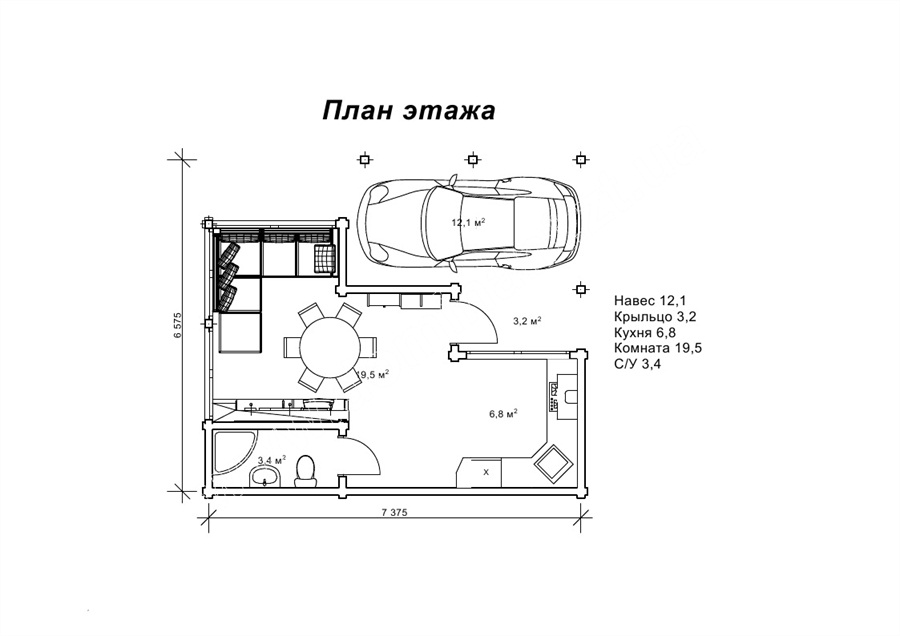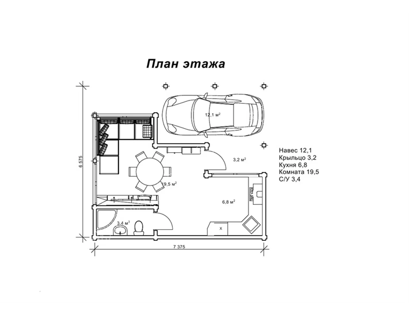 Літній будиночок 6,5х7 м з гаражем - «Джаз»
