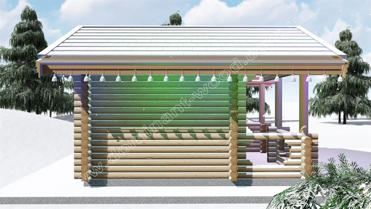 Проект «Будиночок Св. Миколая» спеціально створений для ярмаркових і виставкових заходів. Казковий вигляд котеджу із затишною терасою відразу приверне увагу відвідувачів. Дивлячись на такий чарівний будиночок під пухнастим сніжком, відразу хочеться повірити в новорічне диво. Дерев’яний будиночок збирається з оциліндрованих колод легко і швидко. Компактні розміри дозволяють помістити будову навіть на мініатюрної території. А при бажанні «Будиночок Св. Миколая» легко перемістити в будь-яке інше місце.