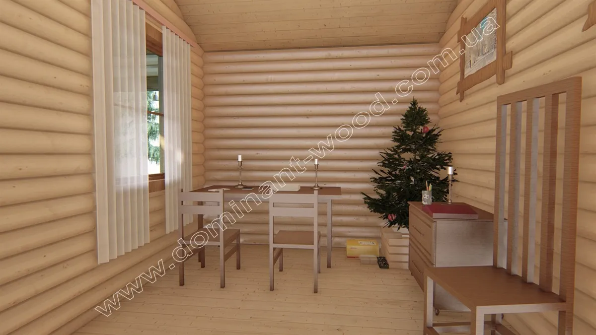 Параметри споруди «Будиночка Св. Миколая» складають 4,5 на 4 м. Загальна площа котеджу з терасою - 18 м2. Розмір кімнати становить 12 м2, а тераси - 6 м2. Проект «Будиночок Св. Миколая» в точності повторює «Будиночок Санта-Клауса», який виконується з сухого, профільованого бруса. Тим самим ми надаємо вам прекрасну можливість вибирати цей будиночок в будь-якому виконанні. Майстри «Домінант» якісно побудують будь-який проект з оциліндрованих колод або сухого, профільованого бруса, а також за технологією подвійного бруса з утепленням. Приклад проектів будинків з різного виду бруса можна подивитися у відповідній публікації нашого сайту.