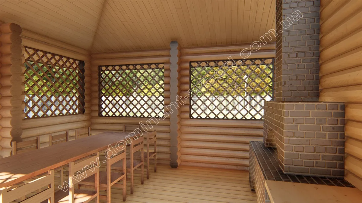 Виробництво лазні зрубу з альтанкою за проектом «Еліана»