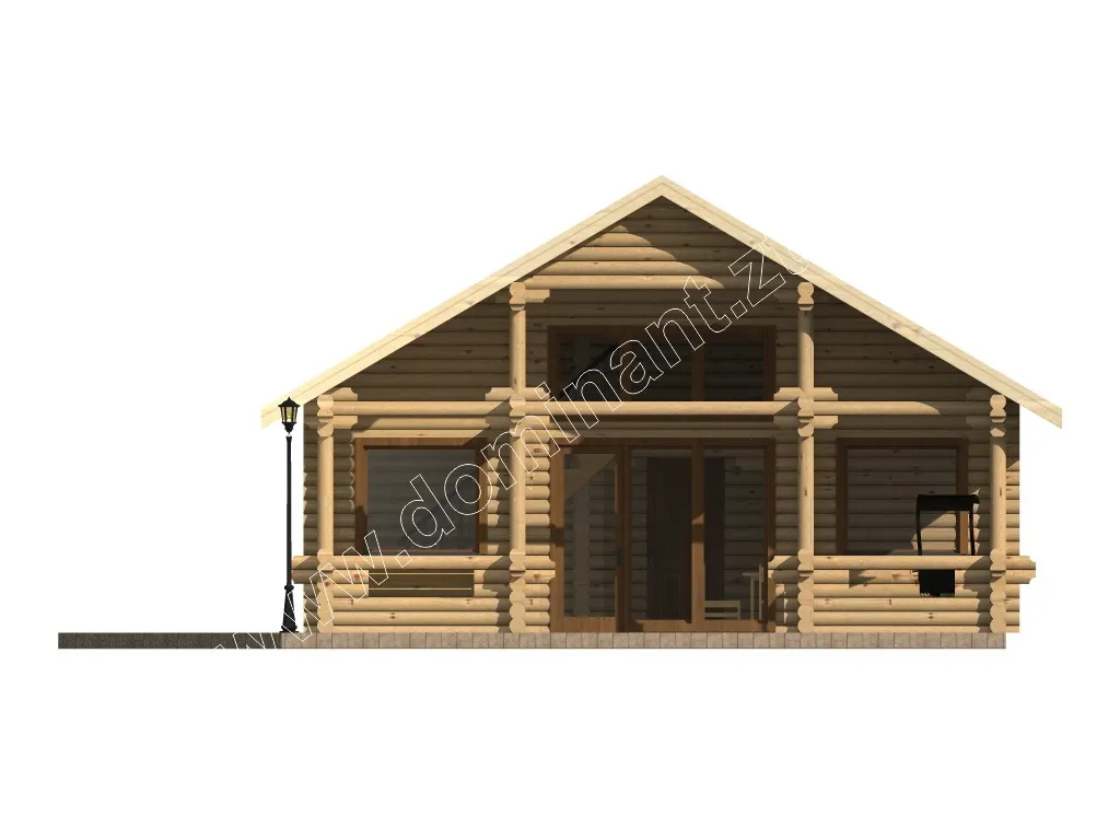 У такому дерев’яному будинку з лазнею можна відпочити і оздоровитися, а також відчути максимальне наближення до природи. Він навряд чи підійде тим, хто хоче зробити дачу своєю другою домівкою, хоч і володіє всіма зручностями. Для однієї людини занадто просторо, а для сім’ї малуватий. Але це не заважає йому бути хорошим місцем для відпочинку. Що видно з першого погляду, так це приємну симетричність і невисокий, з невеликим скатом, дах. Така архітектурна деталь є дуже популярною, вона робить будинок на вигляд не таким високим і більш плавним, а поруч з великими гіллястими деревами це ще більше буде помітно.