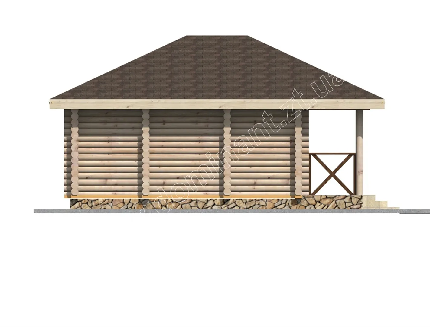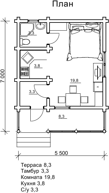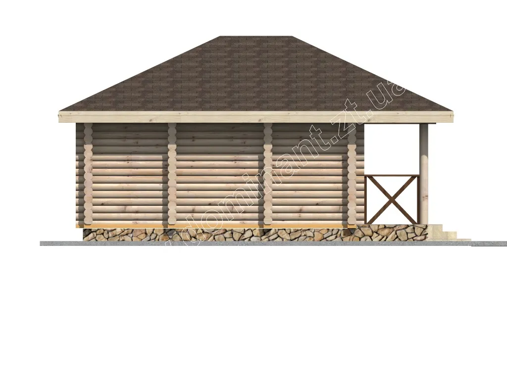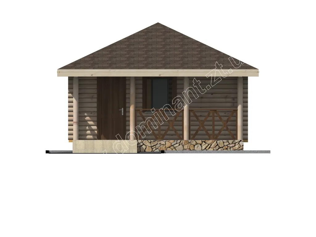 Проект маленького економічного будинку з бруса, який включає всі необхідні приміщення для повноцінного відпочинку і життя. Котедж Пегас включає терасу, тамбур, кімнату, кухню, санвузол. Така дачка допоможе усамітнитися і відпочити від міської метушні, приємно провести час у колі сім’ї та друзів на свіжому повітрі. Затишна тераса дозволяє вам, як приймати гостей, так і просто наодинці із зовнішнім світом і загадковою природою зануритися з головою в свої думки.