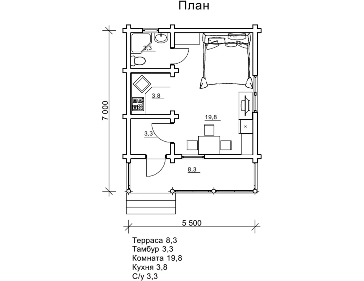 Садовий будиночок з терасою, студія 5,5 на 7м - «Пегас»