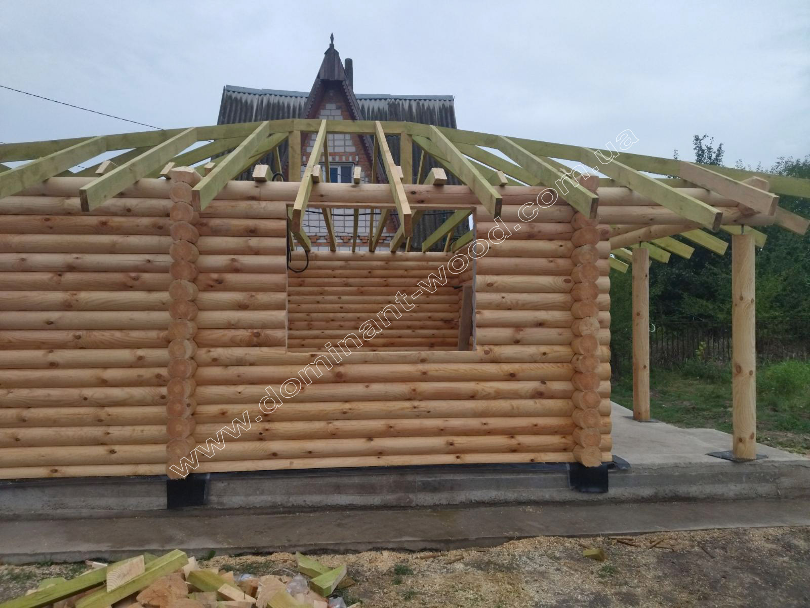 Каркасні конструкції виготовляються на власних виробничих потужностях компанії «Домінант», з використанням сучасних деревообробних станків. Імпортне, високоточне обладнання дозволяє нам високоякісно виконувати свою роботу. Каркаси складаються зі струганих, ретельно висушених балок 150х50 мм (сосна першого сорту). Ці балки застосовуються для зовнішніх каркасів.