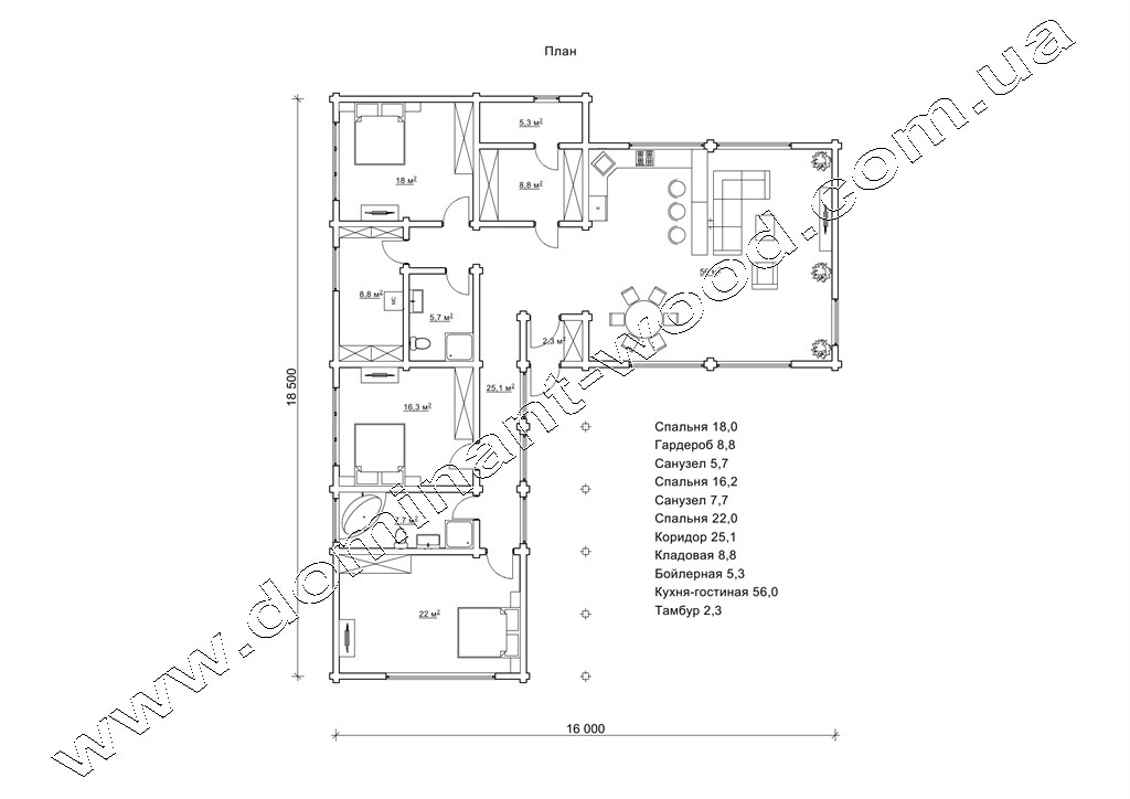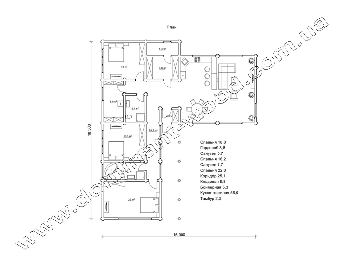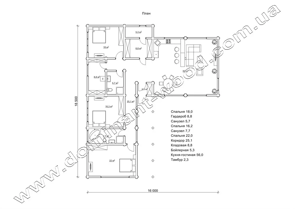 План кімнат вілли «Сеферіна» 18,5х16 м