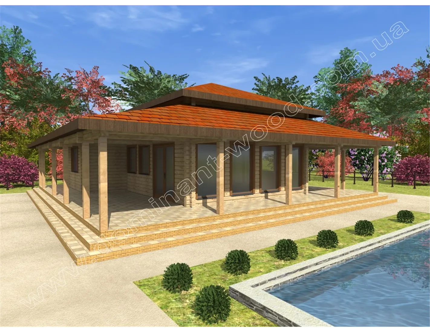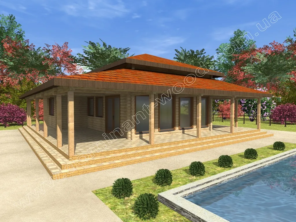 Проект Сейда є незвичайним будинком, виконаним в японському стилі з профільованого бруса. Такий цікавий варіант можна придбати в якості комфортної дачі або навіть бунгало для невеликої сім’ї. Даний проект відрізняється своїми цікавими особливостями. Найяскравіша особливість Сейди - це її велика літня тераса, яка оточує споруду по периметру. Тут і під час дощу, і під час яскравого, спекотного сонця можна з комфортом проводити час на свіжому повітрі. Таким чином, будиночок Сейда максимально наближає своїх домочадців до природи і дарує можливість дуже багато часу проводити на вулиці.