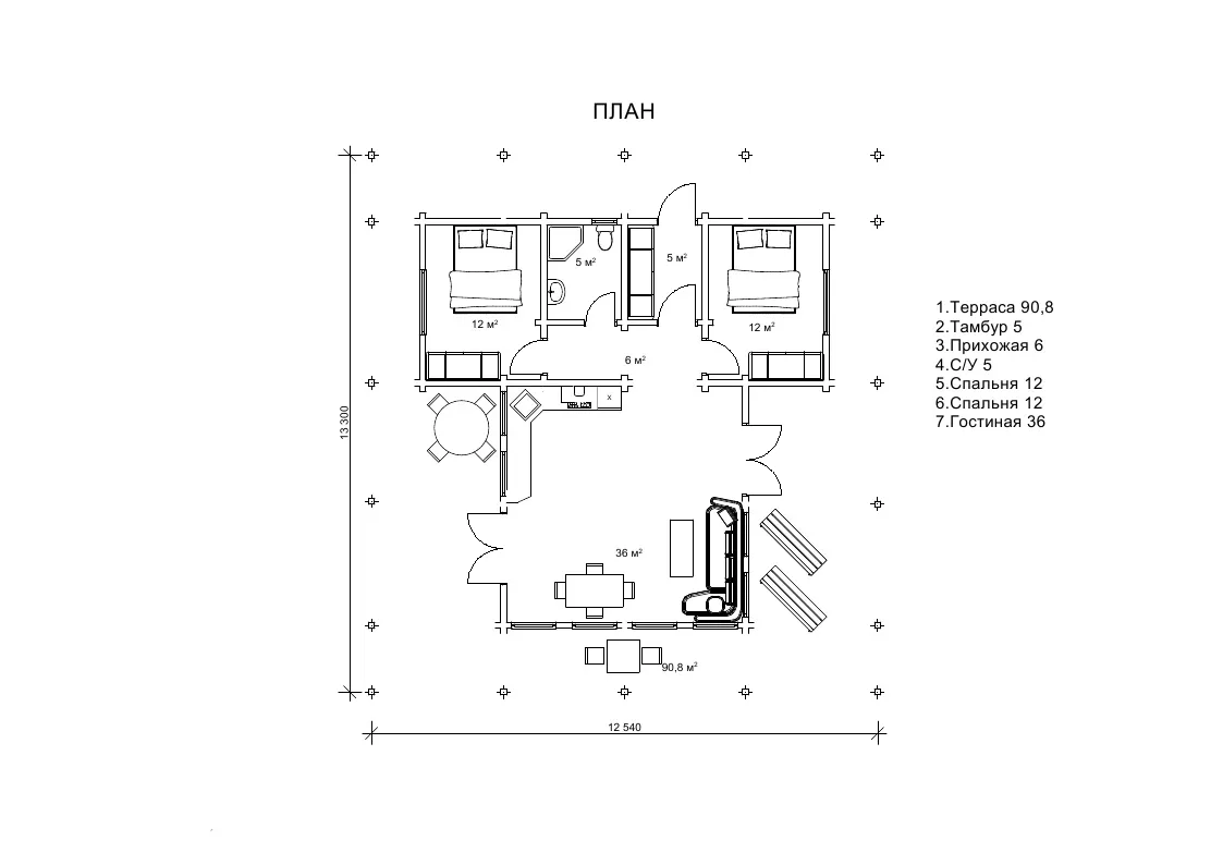 Внутрішнє планування проекту Сейда dominant-wood.com.ua/uk/proekty/658-sejda передбачає наявність двох спалень. Вони розташовані в протилежних кутках будівлі і розділяються приміщеннями санвузла та передпокою. Це дуже зручно, тому, що домочадці ніколи не завадять один одному і будуть мати достатньо місця для особистого простору і улюблених занять в своє задоволення. Також Сейда має велику і добре освітлену кухонну зону.