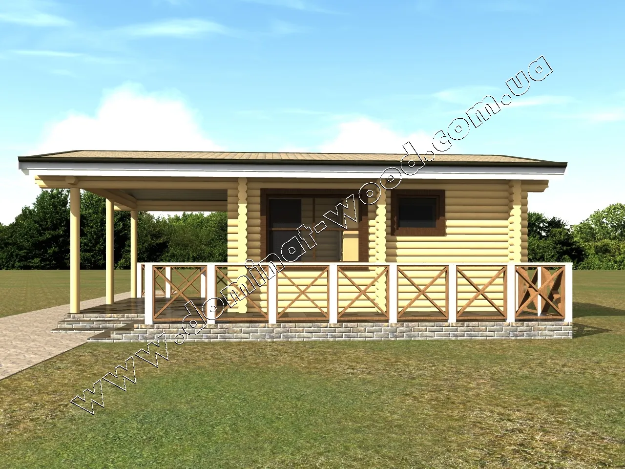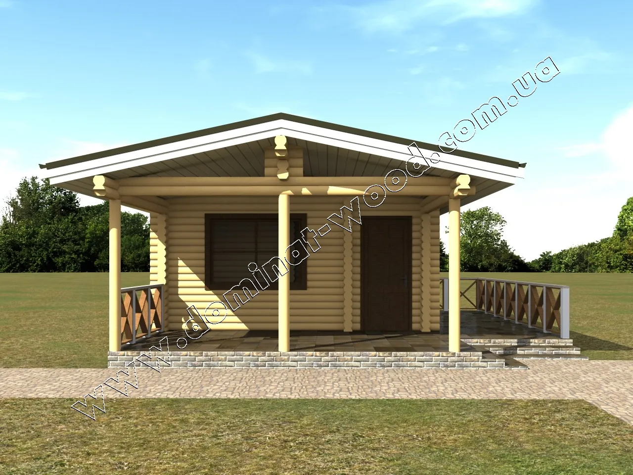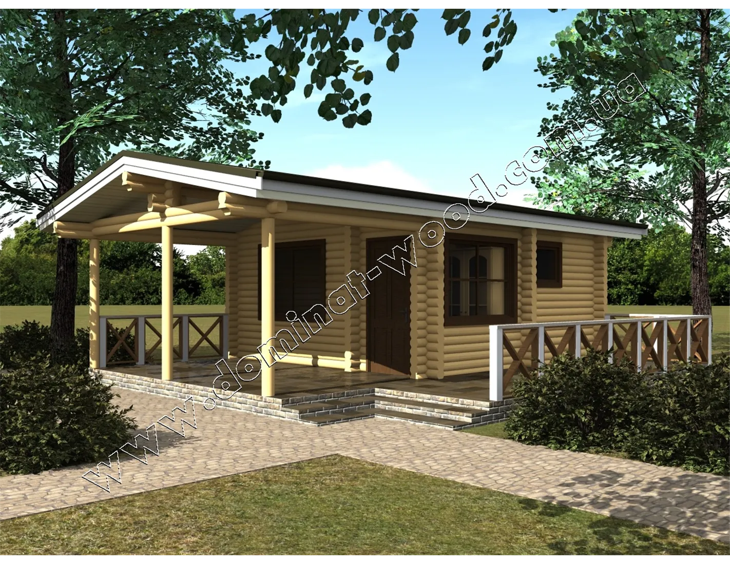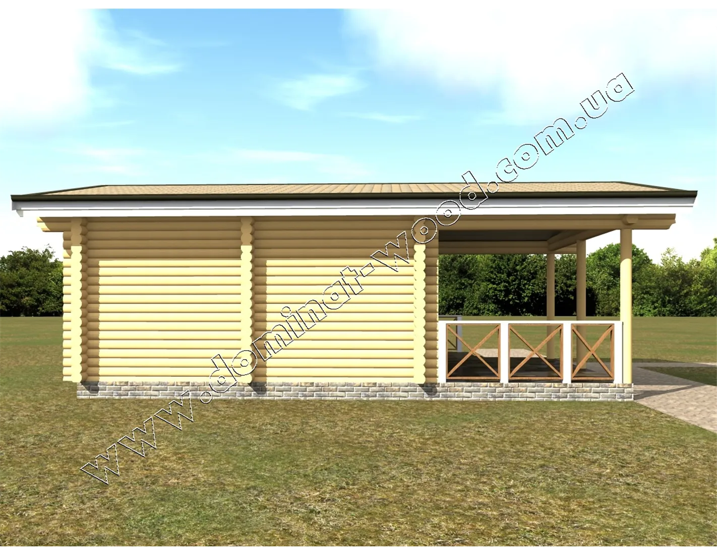 Будівництво лазні з колод з терасою, проект «Дюна»