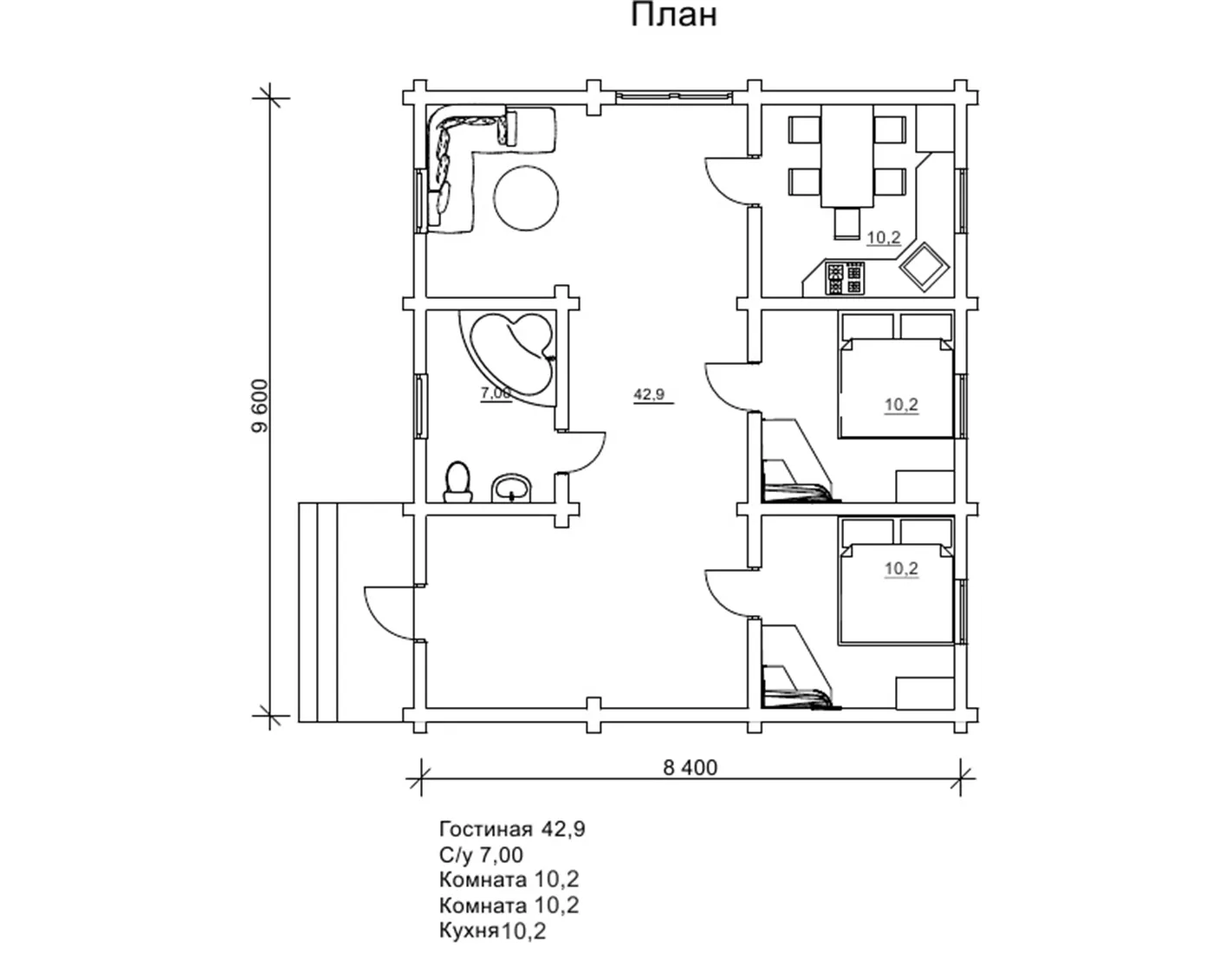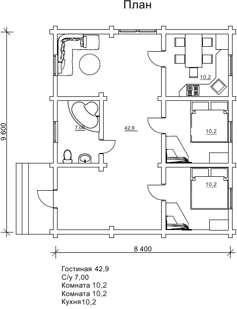 Готовий проект котеджу безкоштовно 8,4х9,6м - «Котедж Хойа»