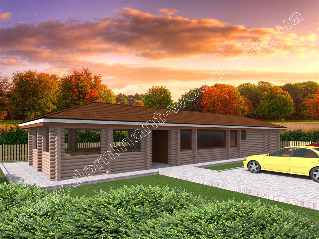 Павільйон «Ерена» виглядає цікаво і масштабно. Це подовжена, дерев’яна будівля, виконана з оциліндрованих колод. При першому погляді на споруду можна відзначити, що проект «Ерена» складається з двох частин: відкритої, незаскленої веранди і закритого приміщення. В цілому, екстер’єр будівлі максимально простий, без надмірностей. Такий стандартний оциліндрований зруб буде мати гарний вигляд на будь-якій ділянці і гармонійно зливатися з навколишньою природою, по суті, будучи її частиною.