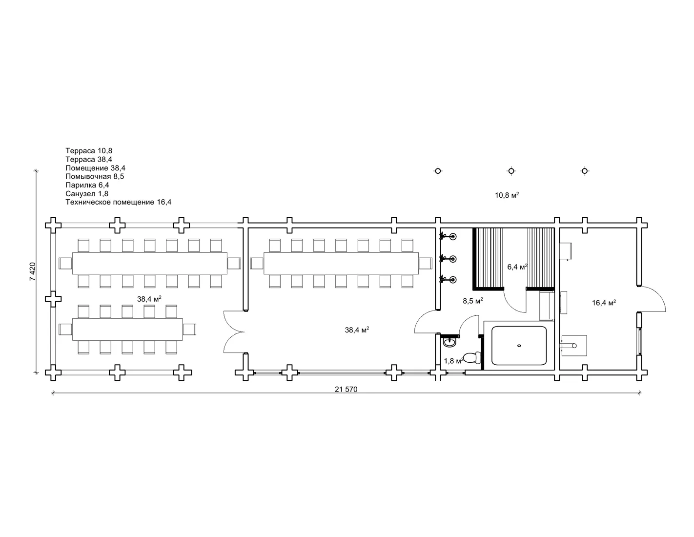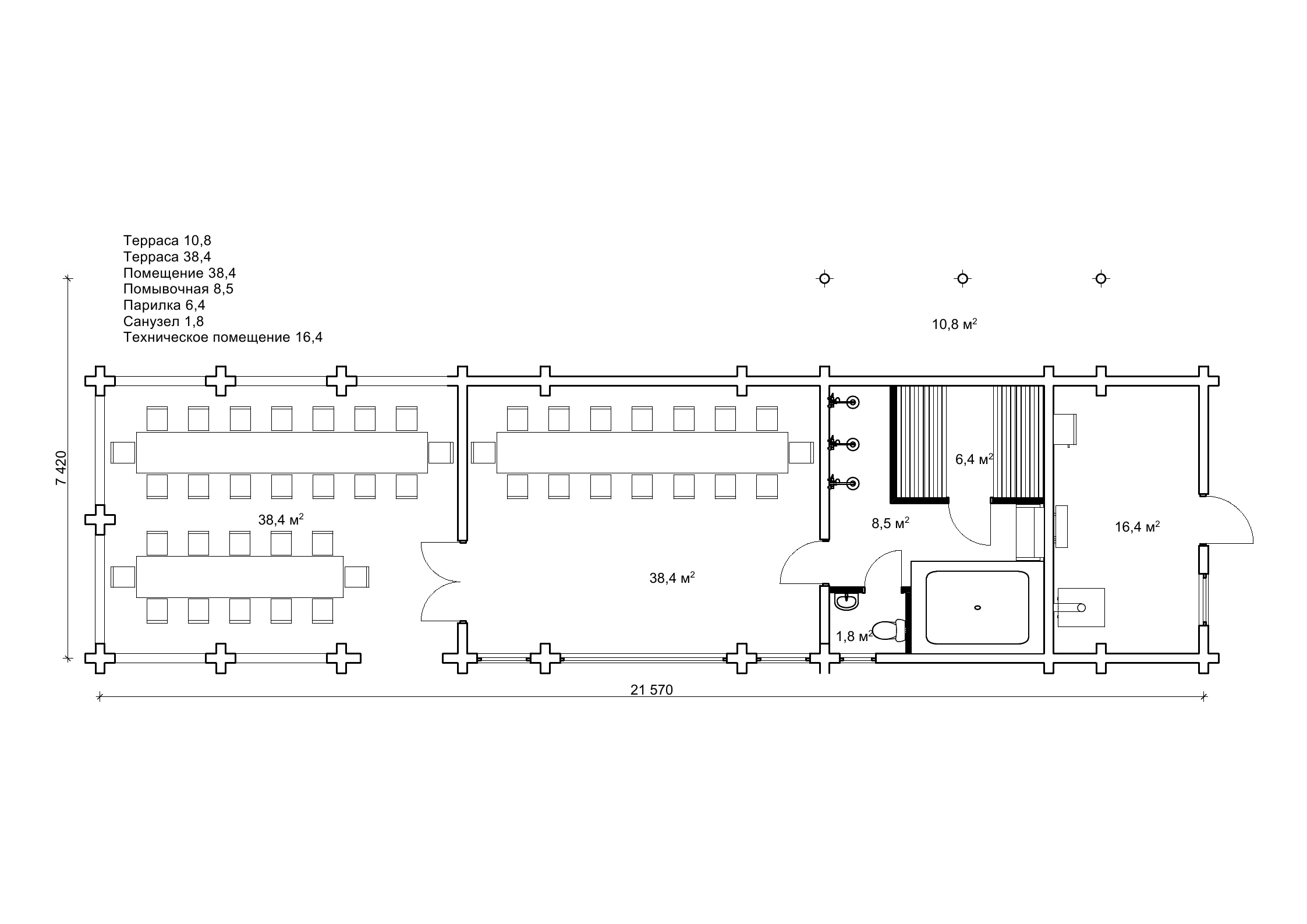 Павільйон з лазнею і альтанкою 7,4 на 21,5 м - «Ерена»