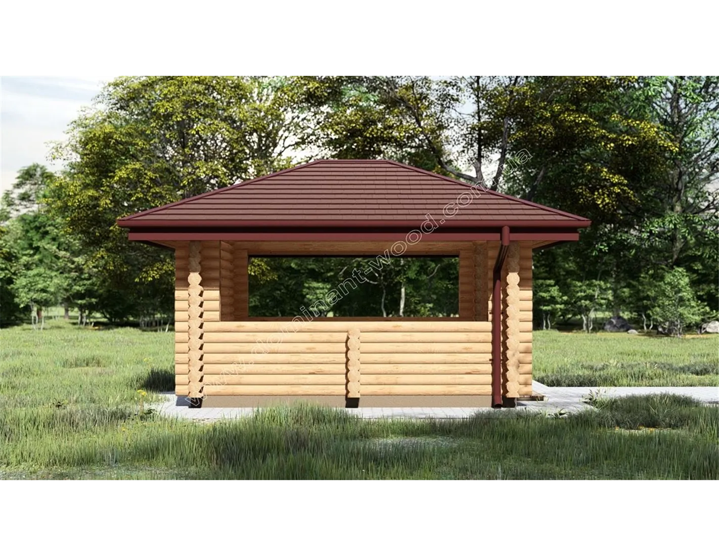 Дерев’яна альтанка під ключ 3 на 4 м Маргаритка може вмістити до 15 чоловік. І навіть велика компанія в Маргаритці зможе сховатися від спеки або негоди. Якщо подбати про облаштування альтанки столом і лавками, вона може стати частиною ресторанно-готельного комплексу. Цю красиву, функціональну альтанку можна з успіхом здавати в оренду в якості фуршетной альтанки для літніх застіль. Крім того, цей універсальний проект класичної прямокутної бесідки добре підійде для розміщення в садово-парковій або рекреаційній зоні міста. Дуже красиво буде розташувати альтанку Маргаритка так, щоб з неї відкривався мальовничий вид на навколишній пейзаж, і тоді вона стане найулюбленішим місцем для проведення дозвілля городян і гостей міста. Екологічність, витончена природність, естетичність натурального дерева, що властиві альтанці з бруса роблять її найбільш популярним об’єктом ландшафтного дизайну на природі і в приватних домоволодіннях. У такій альтанці як Маргаритка всі будуть перебувати в гармонії з природою і відчувати себе зручно.