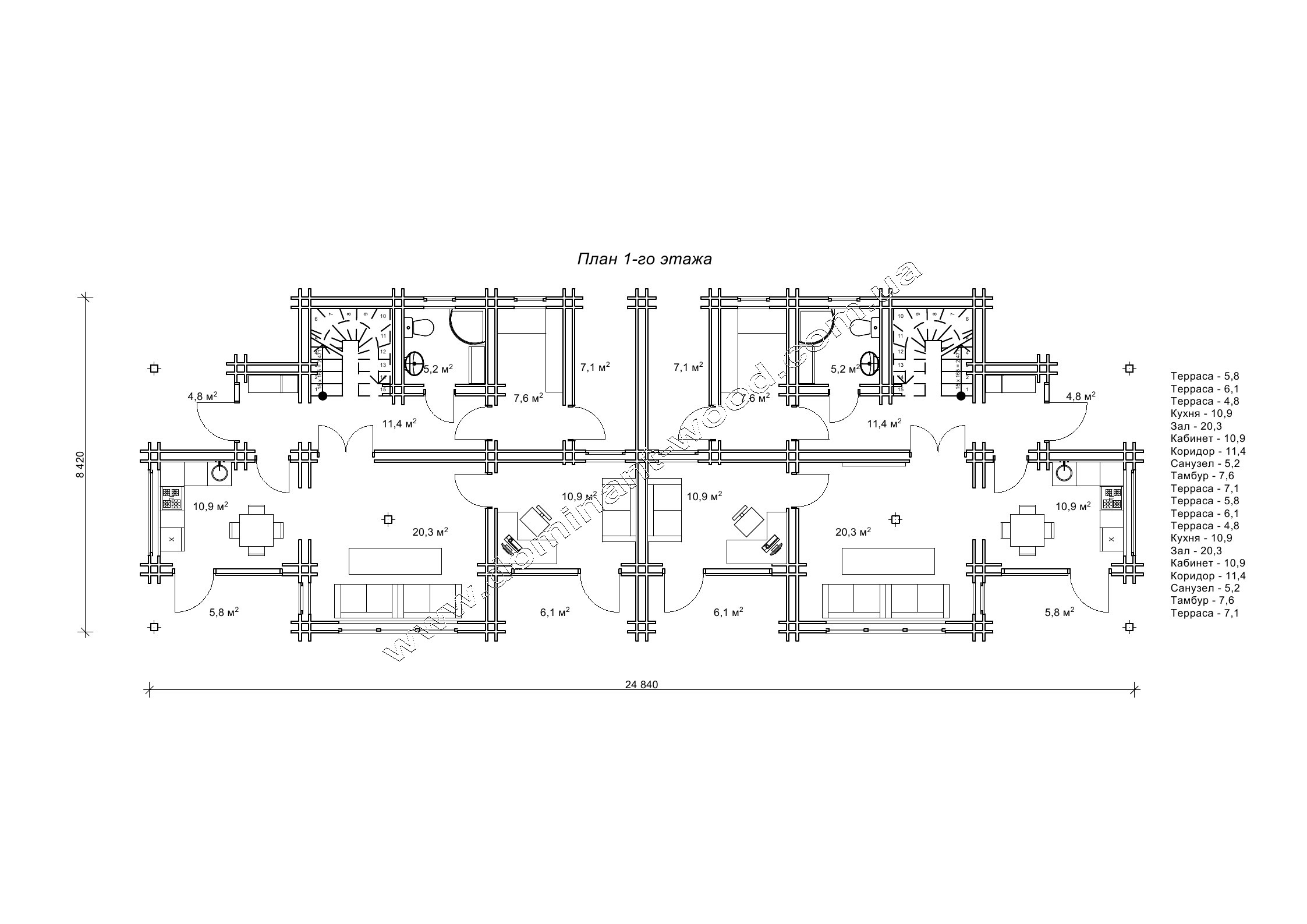 Будівництво маєтку з брусу з утепленням, проект для двох сімей