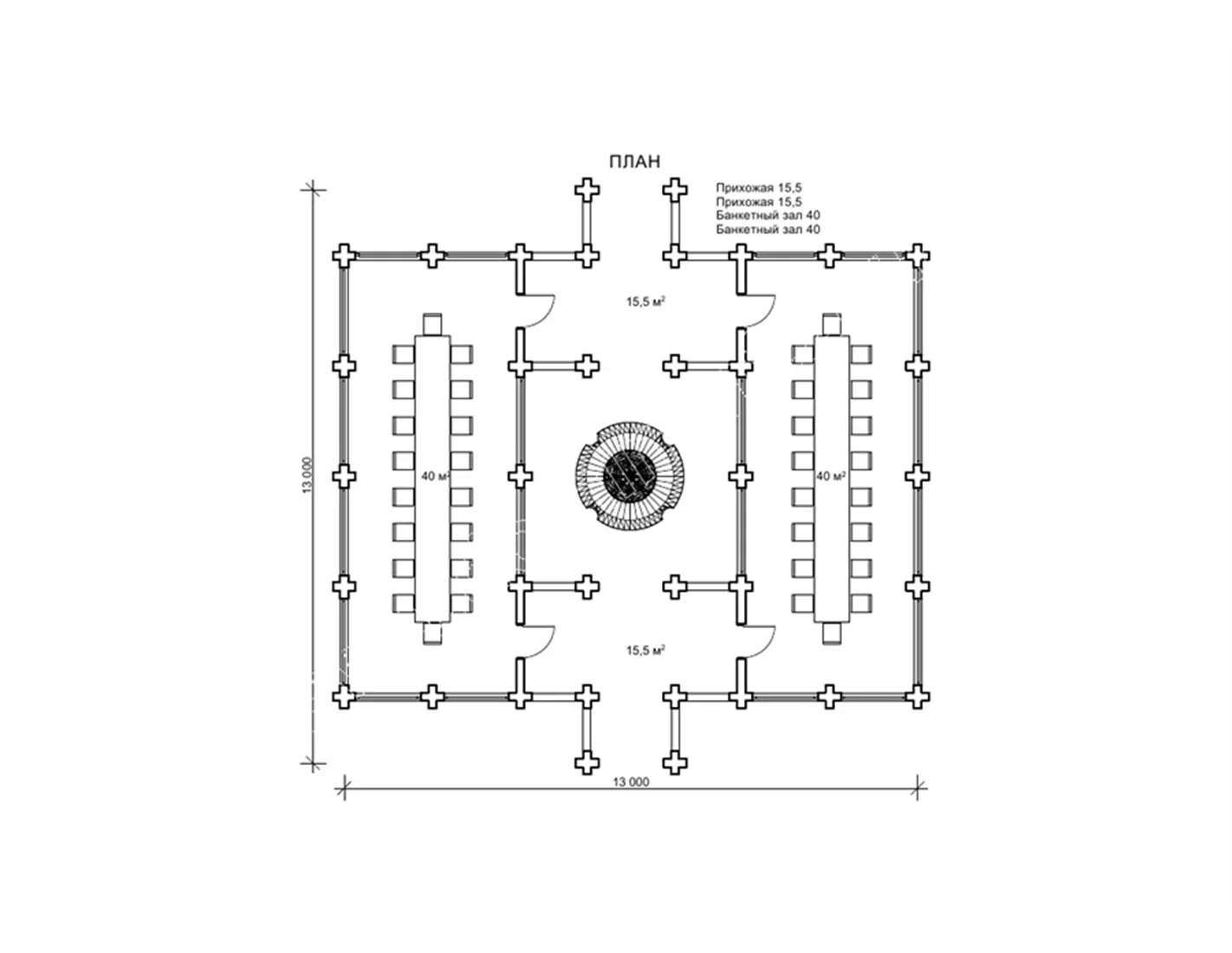 Представляємо цікаве рішення дерев’яного павільйону для кафе чи ресторану, втілене в проекті Імператриця. Даний проект вміщує два просторих банкетних зали і передпокої. Родзинкою павільйону виступає фонтан в центрі приміщення, який створює особливу, неповторну атмосферу і надає всій будівлі лиску і урочистості. Перевага пропонованого павільйону в тому, що це закрите приміщення, яке можна використовувати не тільки влітку, а й цілий рік для організації святкових заходів.