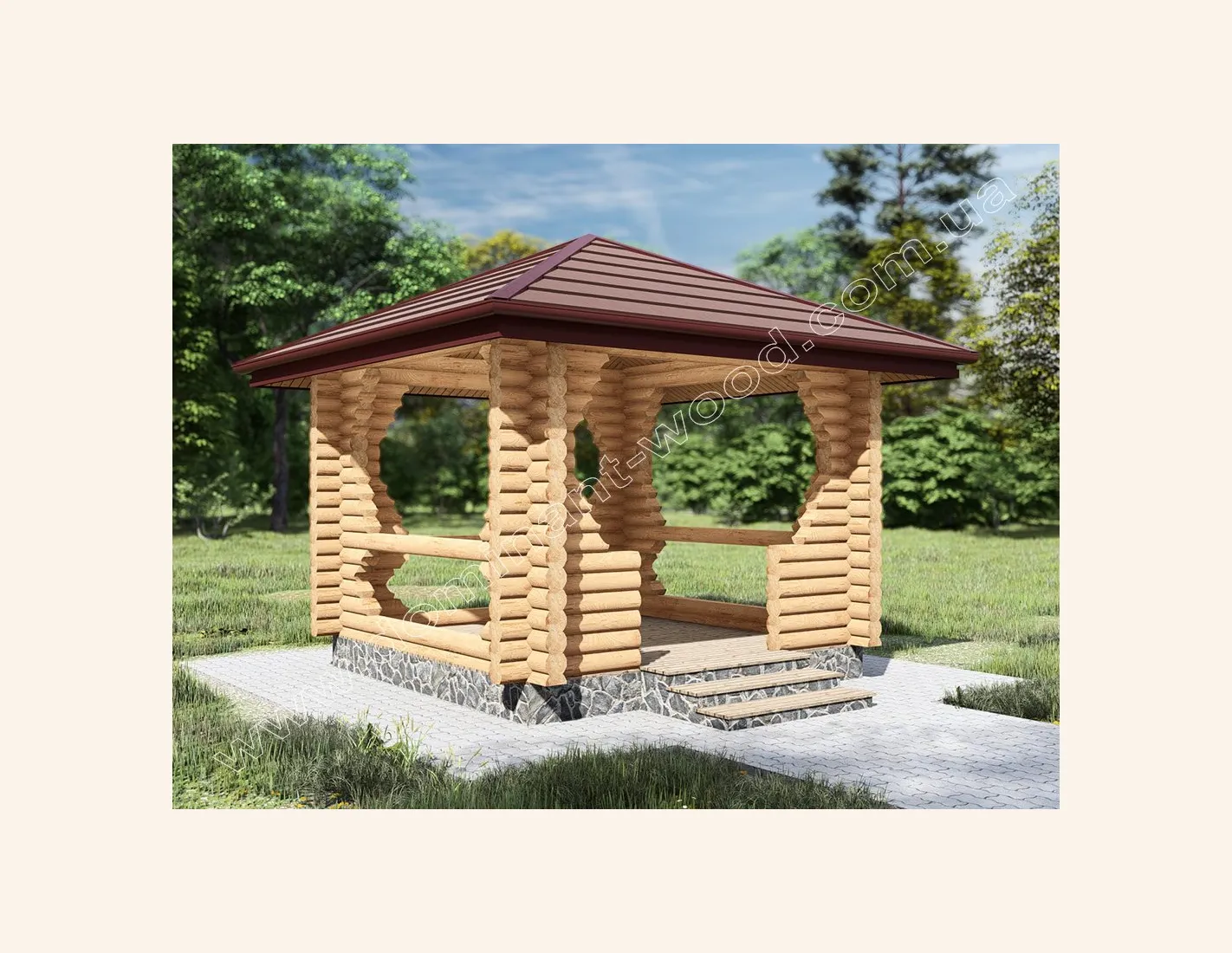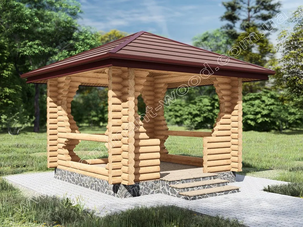 Класична дерев`яна альтанка 3х3 м з бруса - «Бесіда»