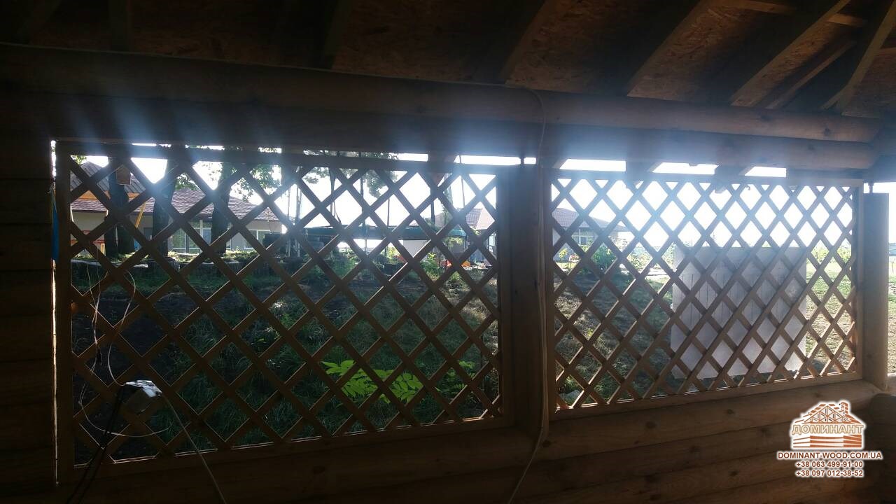 Цікавий проект дерев’яної альтанки «Шампурі» відрізняється абсолютно нестандартним виглядом і прикрасить будь-яку місцевість, будь то парк, база відпочинку або просто прибудинкова територія біля приватного будинку. Що особливо цікаво, господарі вирішили зробити саме таку альтанку біля проекту Заміський будинок 7,5 на 12 м з сухого бруса - «Ландег2». Цей будинок з сухого бруса кардинально відрізняється манерою спорудження в стилі хай-тек від колодчастих класичних зрубів. Але сосновий брус - це по істині універсальний матеріал, який в будь-якому виконанні залишає широту простору для експериментів з дизайном і комбінуванням різних конструкцій і стилів.