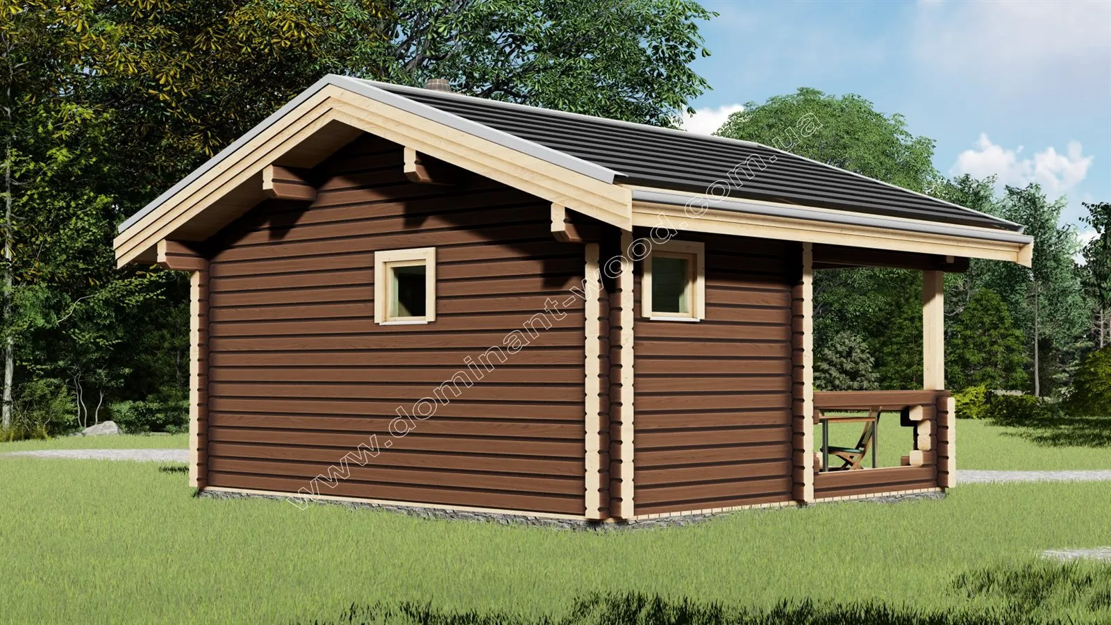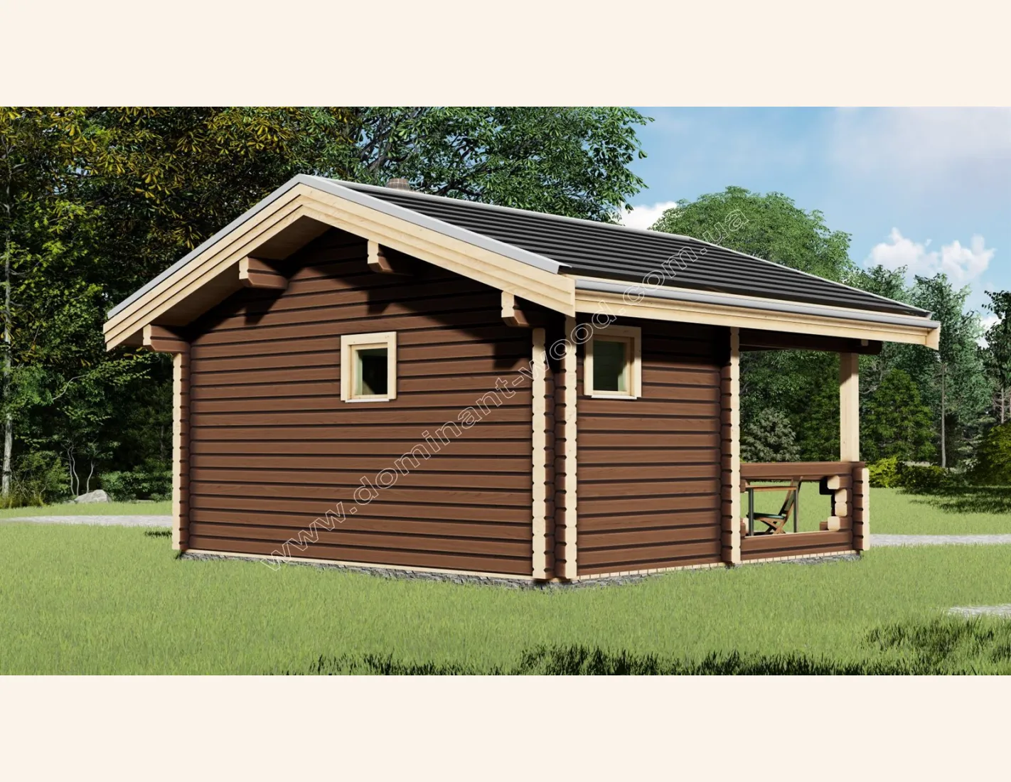 Невеликий проект лазні з терасою «Карой» подарує ідеальне дозвілля з близькими людьми і дозволить добре розслабитися під час парних процедур. Це дуже привабливий, акуратний будиночок з прямолінійними, відшліфованими стінами з сухого, профільованого бруса. Квадратний, сосновий брус, з якого виконується проект «Карой», надає лазні просто чарівного вигляду. Якщо вас цікавлять особливості нашого виробництва сухого, профільованого бруса обов’язково прочитайте статтю «Цілісний сухий профільований брус вакуумної сушки» і дізнайтеся унікальні переваги цього висушеного і стабілізованого деревного матеріалу.
