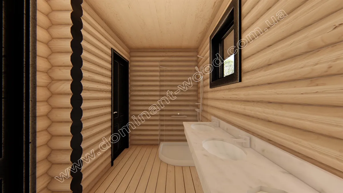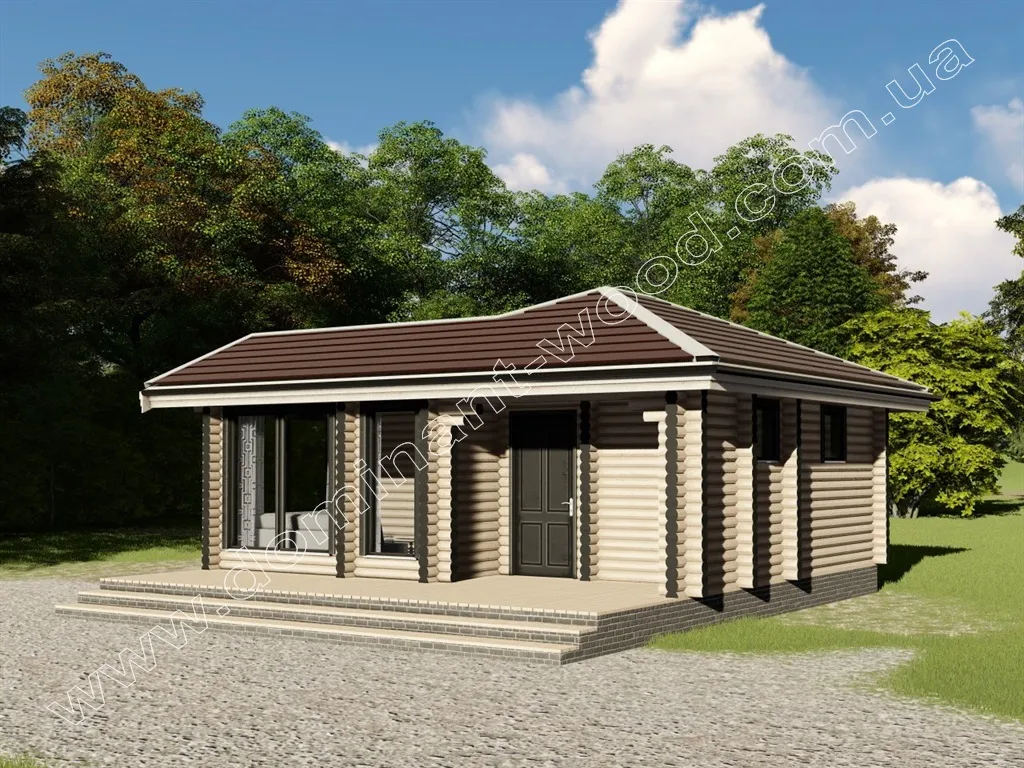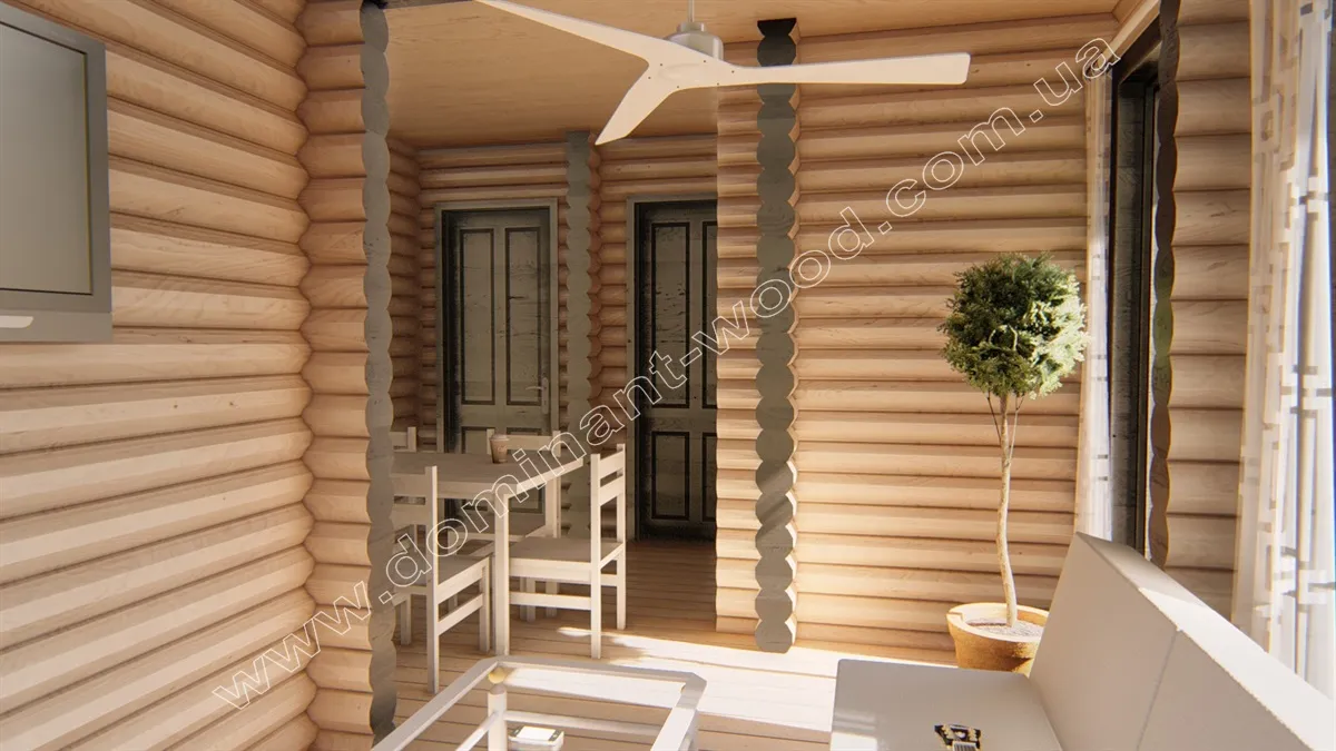 Комерційна лазня-зруб із кімнатою відпочинку «Евальд» площа 38,7 м²