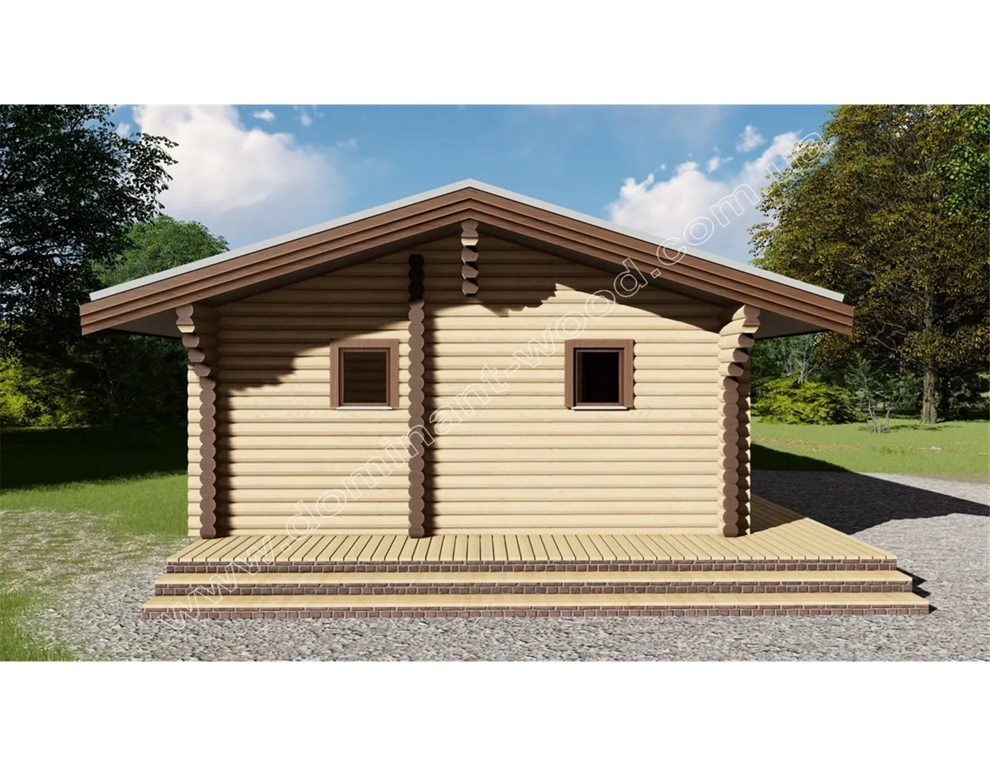 Проект «Майгін» виглядає добротно та привертає увагу самобутньою естетикою натурального зрубу. Гарно виглядає велике, панорамне вікно на бічному фасаді, будова стильно прикрашена фігурними виступами колод, плавно підведеними під схилі покрівлі. Привабливість лазні зі зрубу в комплексі з внутрішнім плануванням, що передбачає максимум зручностей для прихильників парних процедур, становлять вигідну пропозицію для будівництва такої лазні під бізнес. Лазня «Майгін» буде оптимальним вибором саме для комерційного використання та принесе гарний прибуток власнику.