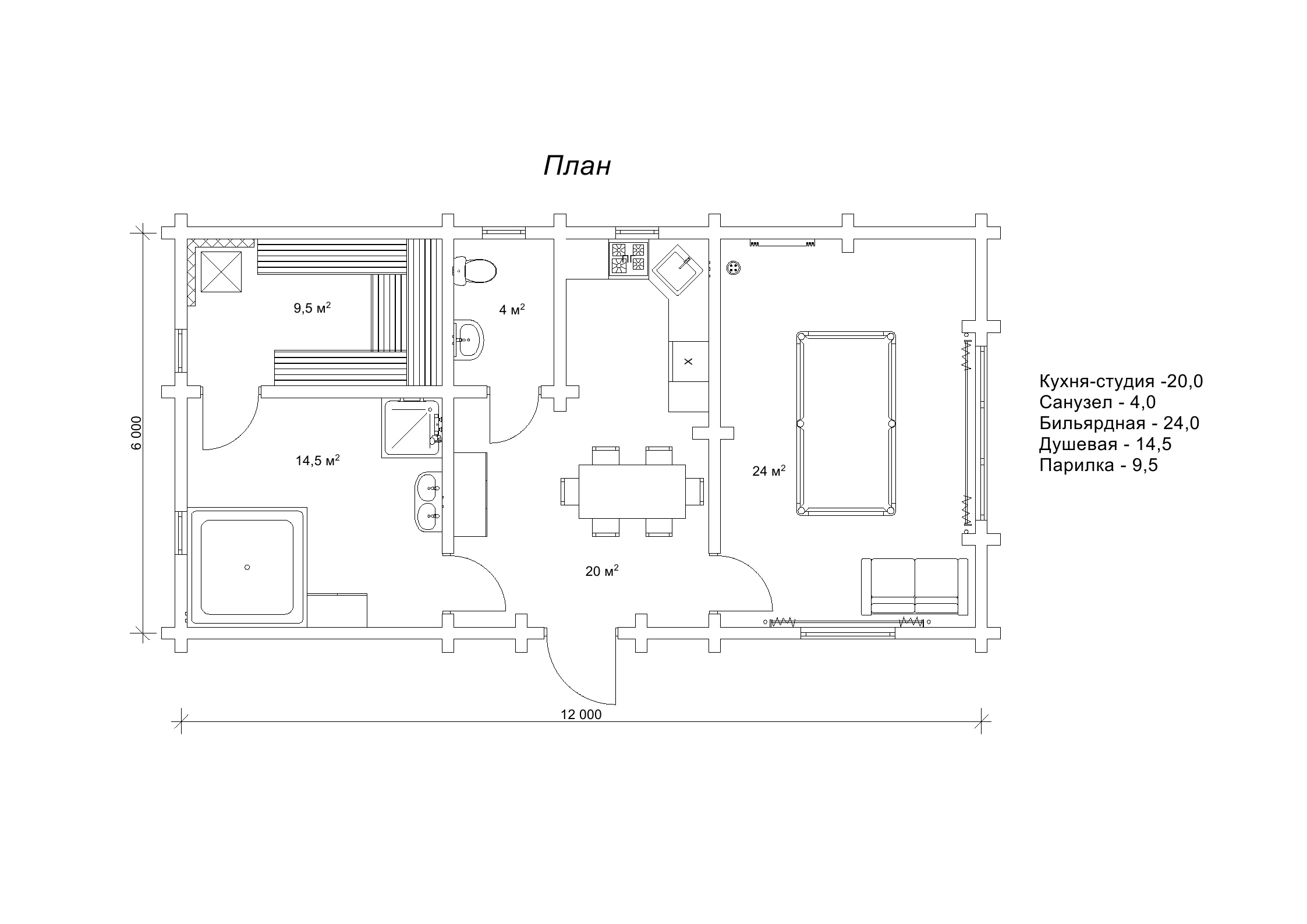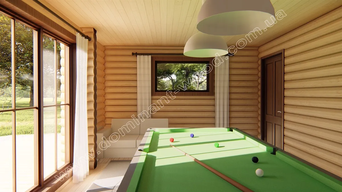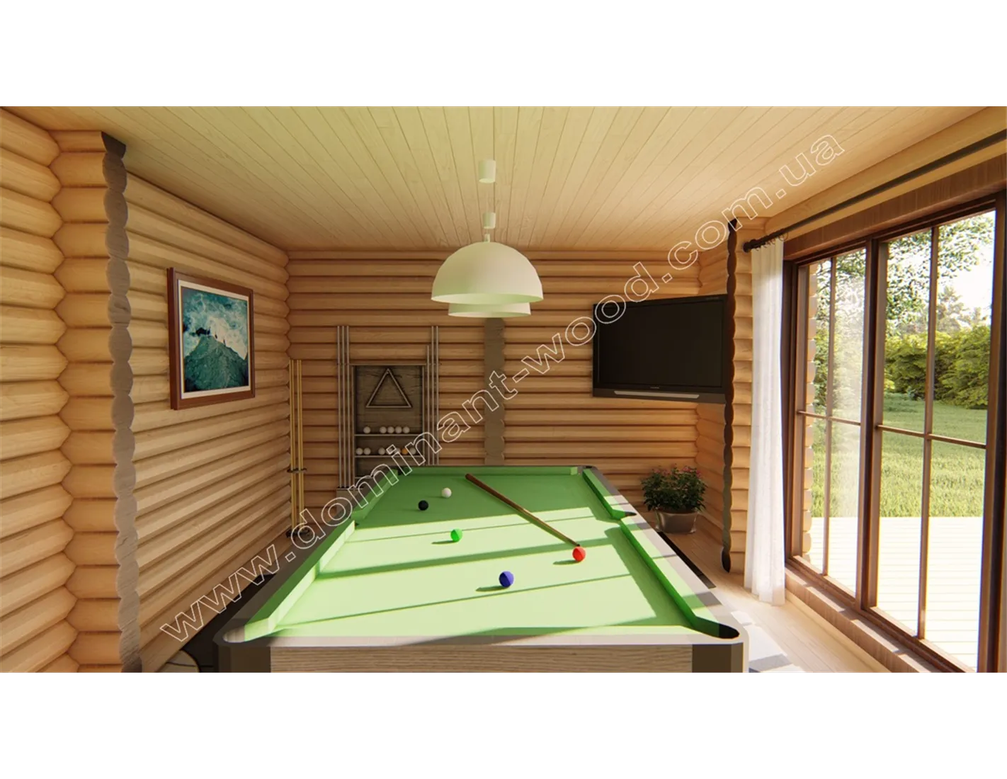 Параметри споруди лазні «Майгін» становлять 6х12 м, площа споруди 72 м2. Розмір парилки досить великий і становить 9,5 м2. Така парильна спроектована з розрахунку, що в лазні можна буде зібратися великою компанією, і всім буде комфортно. Усі приміщення в проекті «Майгін» досить просторі. Душова розрахована на 14,5 м2, тут можна поставити міні басейн або купіль, що ще більше вдосконалить відпочинок в такій лазні. Простора кухня-студія на 20 м2 дозволить відпочити у проміжку між парними процедурами. А приміщення більярдної площею 24 м2 зробить банне дозвілля азартним та захоплюючим. Будівництво комерційної лазні «Майгін» з оциліндрованої колоди – це мудре капіталовкладення у бізнес та створення чудового місця для любителів лазневих процедур! Огляд інших комерційних проектів бань з дерева, які ми пропонуємо будувати саме в бізнес-цілях, презентується в одній з наших публікацій розділу «Статті».