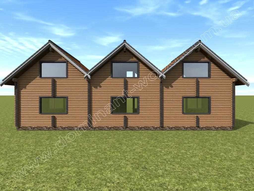Пропонований варіант курортного котеджу Променад3 dominant-wood.com.ua/uk/proekty/731-818-promenad3 цікавий тим, що він складається з трьох секцій, створених за нашим проектом курортного будиночка Променад dominant-wood.com.ua/uk/proekty/731-promenad. Візуальний будинок виглядає дуже цікаво, представляючи собою три будиночка під загостреними мансардними дахами. Дуже миловидні, легкі секції з терасами і балкончиками злагоджено складаються в один дерев’яний котедж і просто радують погляд, налаштовуючи на відмінний відпочинок. З огляду на особливості конструкції, будівля має витягнуту форму і розміри забудови складають 7 на 16,5 м. На площі 231 м² помістилися три повноцінних котеджі, які в загальному плані становлять 6 номерів для відпочиваючих.