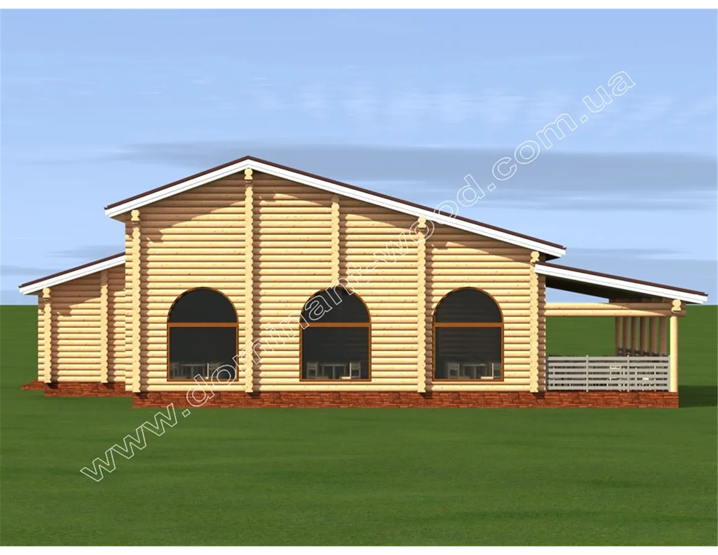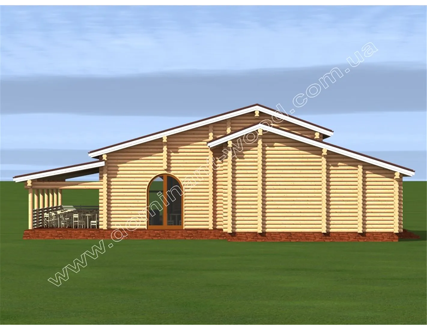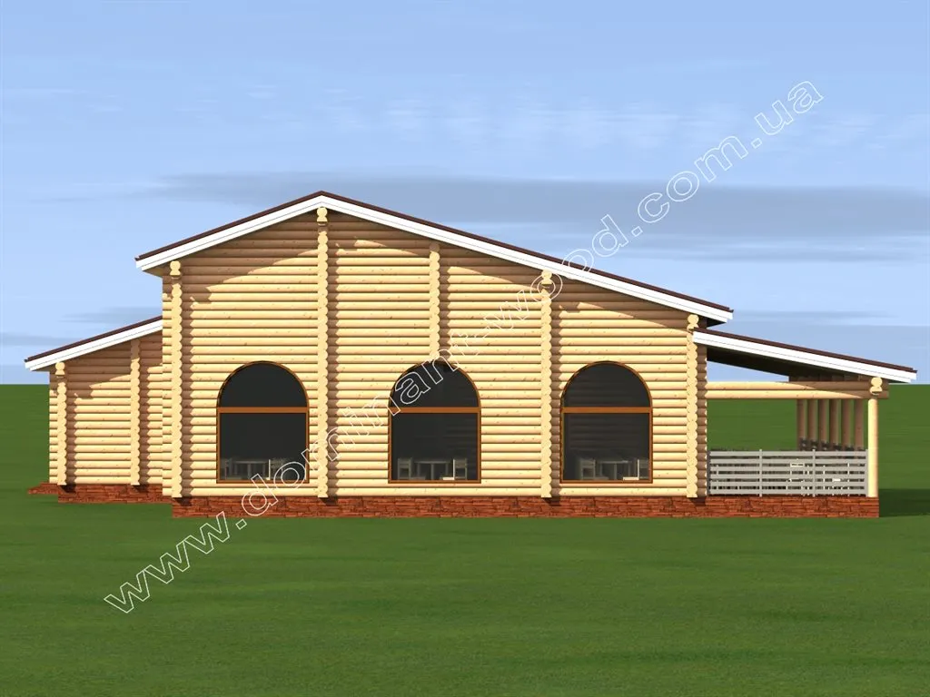 Дерев’яні зруби ресторанів дуже привабливі для гостей за рахунок своєї домашньої, теплої атмосфери. У жодному іншому об’єкті, виконаному в стилі футуризму чи мінімалістичного хай-тек, людина не зможе відчути такий затишок і ауру справжньої природи, яка і є для нас найбільш природним середовищем. Тому саме споруди д ерев’яних ресторанів дуже популярні і ніколи не виходять з моди. Проект ресторану «Частувальня» зовні нагадує розкішну віллу з величезною терасою і красивими арочними вікнами. Привабливий дизайн стане візитною карткою закладу, а внутрішнє наповнення допоможе господареві отримати більше прибутку від роботи ресторану.