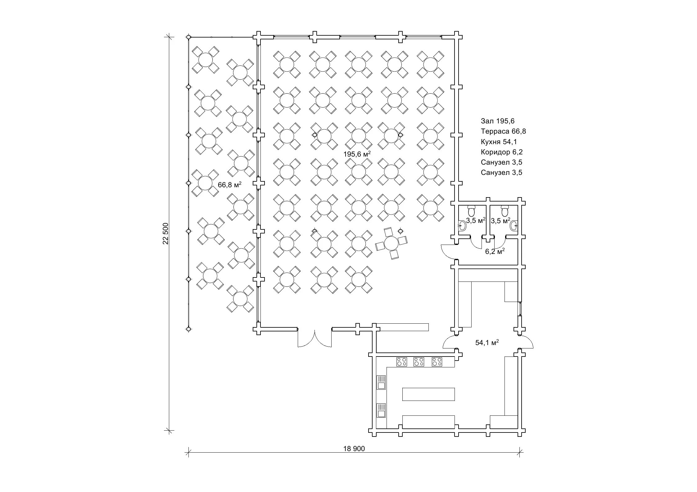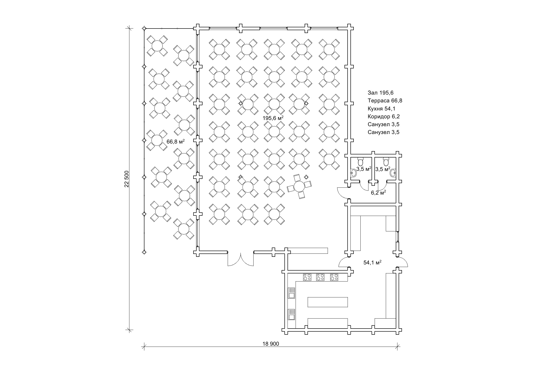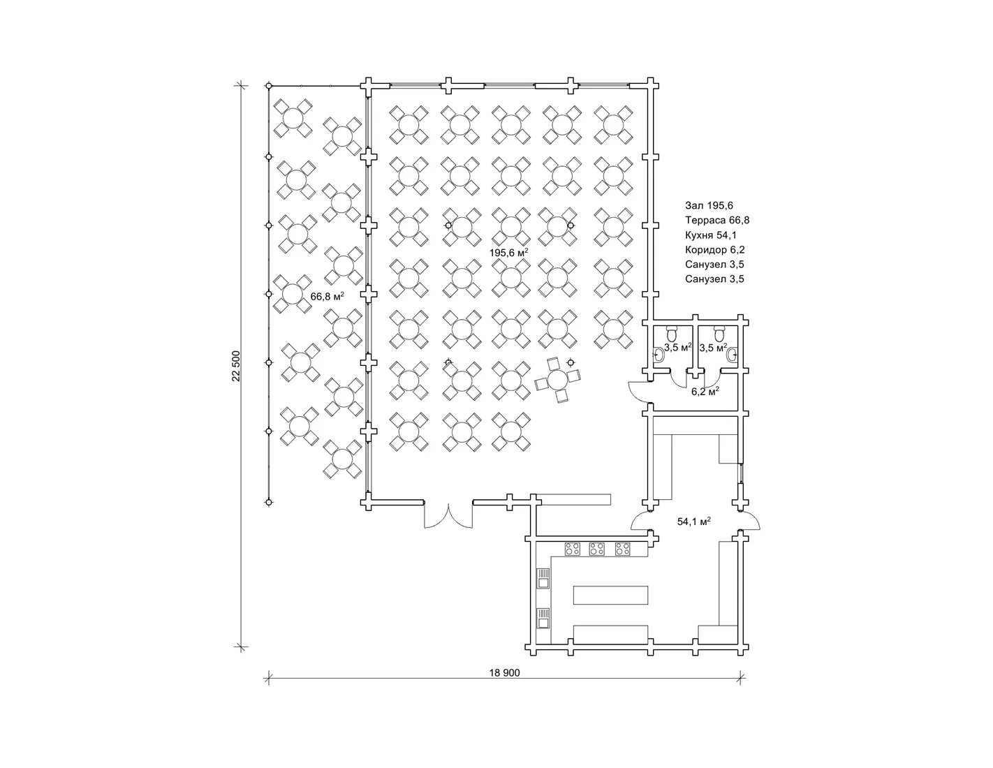План ресторану зі зрубу на один поверх, площа 330 м2
