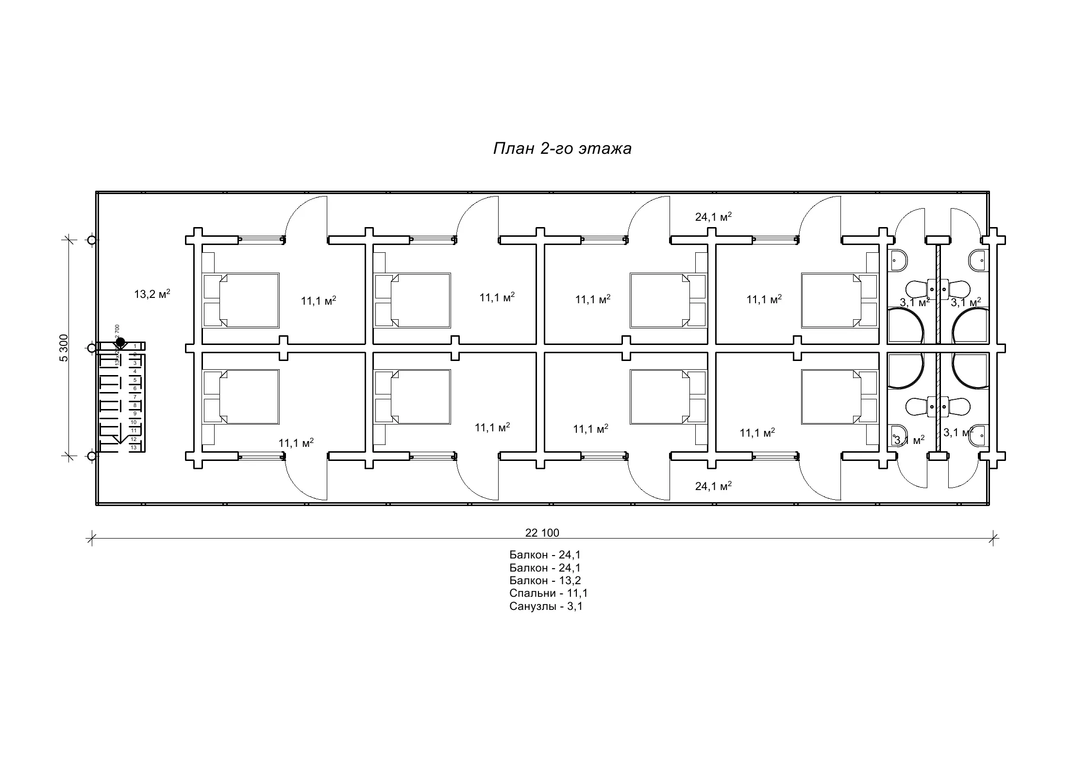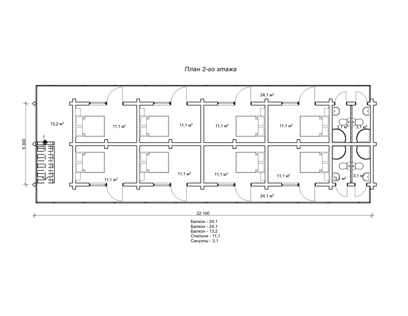 Планування зрубу готелю на 16 номерів, площа 273,4 м2