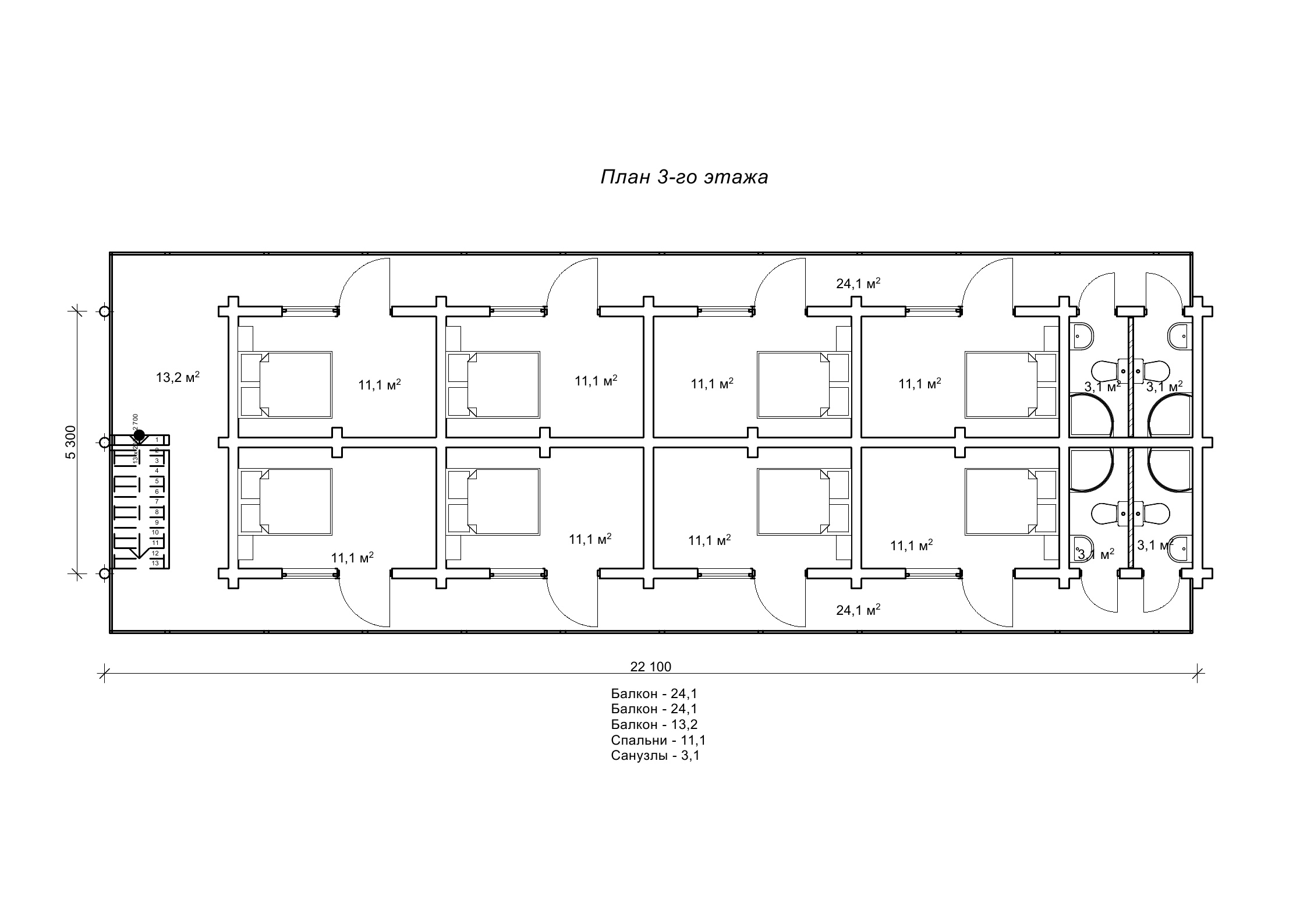 Будівництво готелю зі зрубу на три поверхи по проекту «Готелет»