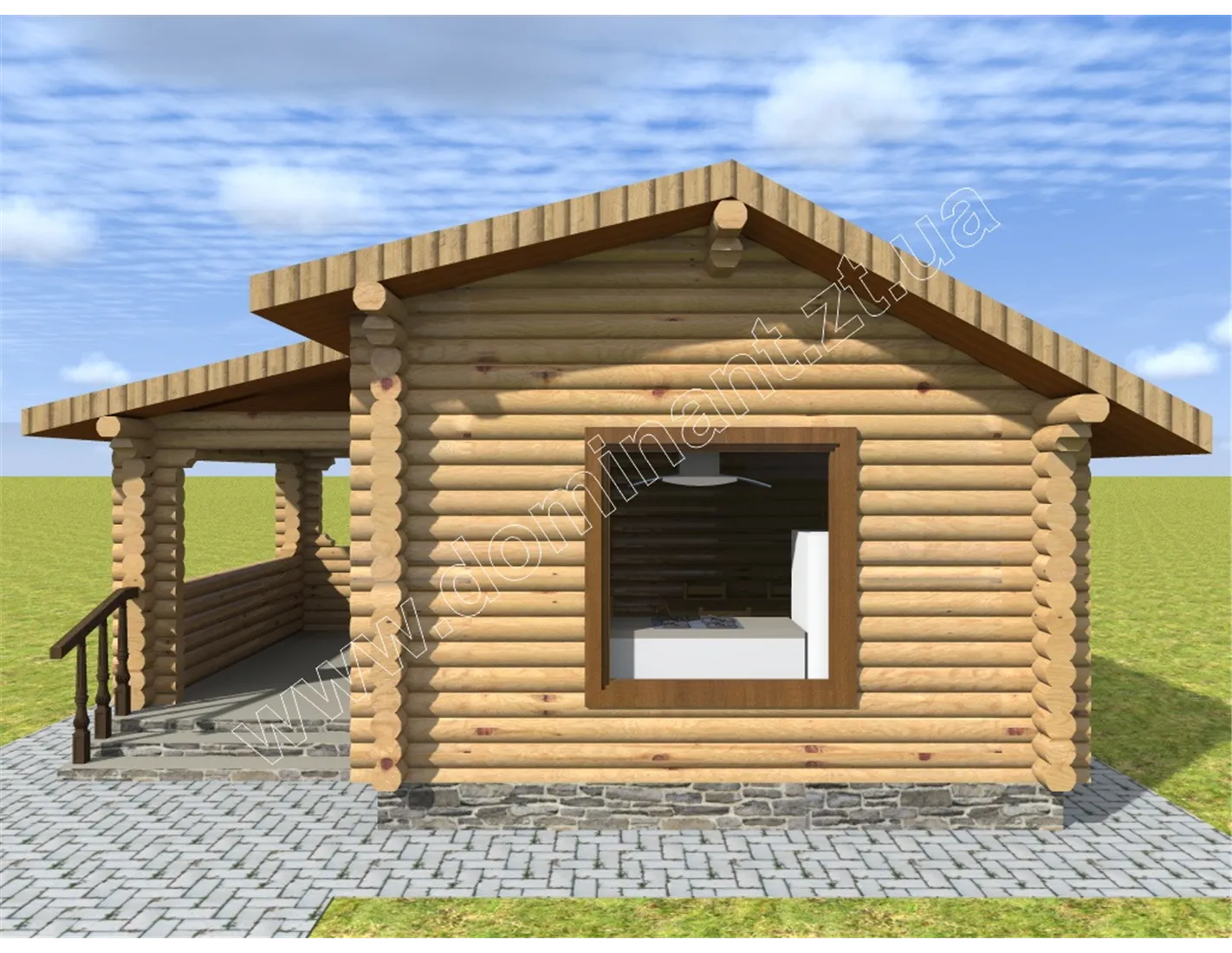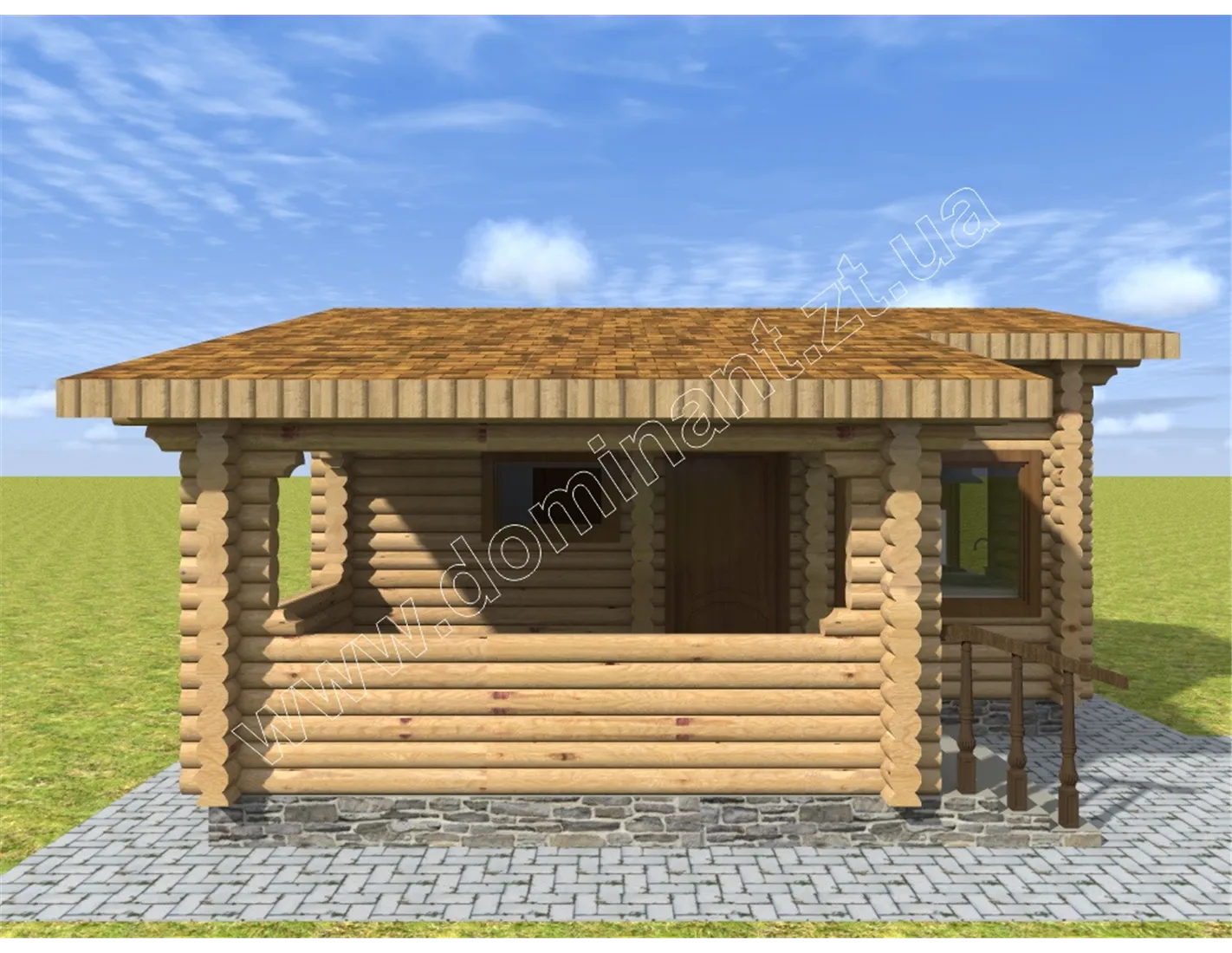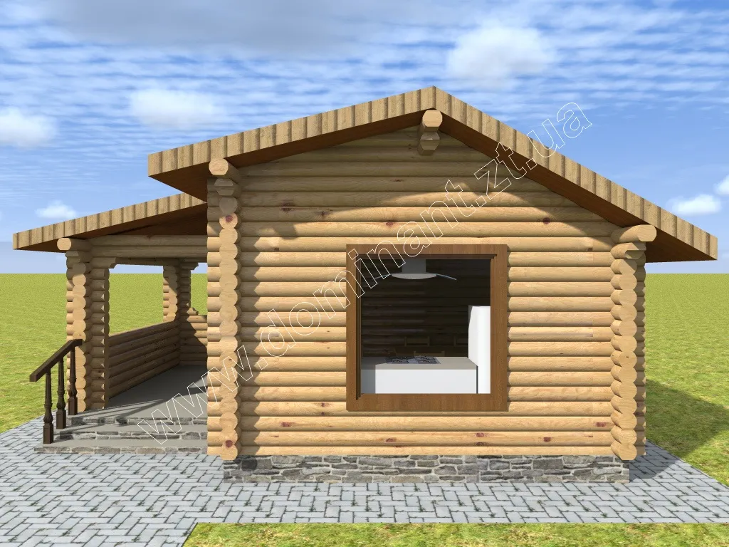 Готова лазня з бруса 6х6,5 м ціна з ґанком - «Грейс»