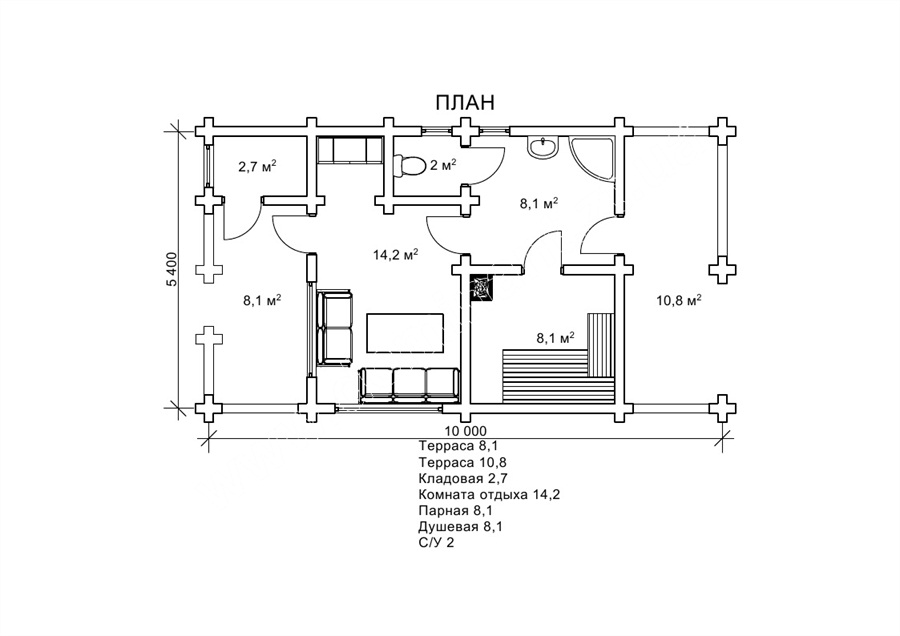 Проект дерев’яної лазні з бруса Лайм передбачає все необхідне саме для повноцінного банного відпочинку. Цей мальовничий дерев’яний будиночок з оціліндрованнх колод повністю виконаний у дусі справжньою баньки з парою і віниками. Габаритні розміри проекту 5,4 на 10 м і загальна площа 54 м² дозволяють помістити баньку Лайм на присадибної території, тим самим доповнюючи головну житлову споруду. Таку баньку можна побудувати на окремій ділянці землі, щоб використовувати її в комерційних цілях. Вона швидко будується, не вимагає дорогої масштабної обробки і може експлуатуватися відразу після установки. У дерев’яній лазні не потрібно буде штучно регулювати вологість у приміщенні, тому що стіни з бруса зроблять це природним чином. Можна зробити висновок, що такий комерційний об’єкт не зажадає масштабних капіталовкладень, швидко окупиться і стане джерелом постійного прибутку для свого господаря.