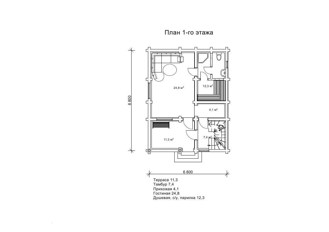 Дерев’яна лазня Монако характеризується досить компактними розмірами споруди: 6,8 на 8,8 м. Усередині спорудження організовано раціонально і зручно для гостей лазні. Проект вийшов дуже містким, він включає в себе вітальню з другим світлом, душову, простору парилку площею 12,3 м², санвузол і більярдну з балконом на другому мансардному поверсі. Поєднання таких характеристик як невеликі розміри споруди, комфортне внутрішнє наповнення, зовнішня естетичність, наявність літньої тераси для відпочинку на свіжому повітрі робить проект дерев’яної лазні з оциліндрованих колод затребуваним і в якості приватного, і в якості комерційного об’єкту. Замовляйте баню з оциліндрованих колод Монако в компанії «Домінант» і ми з радістю реалізуємо цей чудовий проект для вас. Про переваги будівництва лазні з оциліндрованого брусу читайте на сайті: dominant-wood.com.ua/ru/42-bani-iz-ocilindrovannogo-brusa.