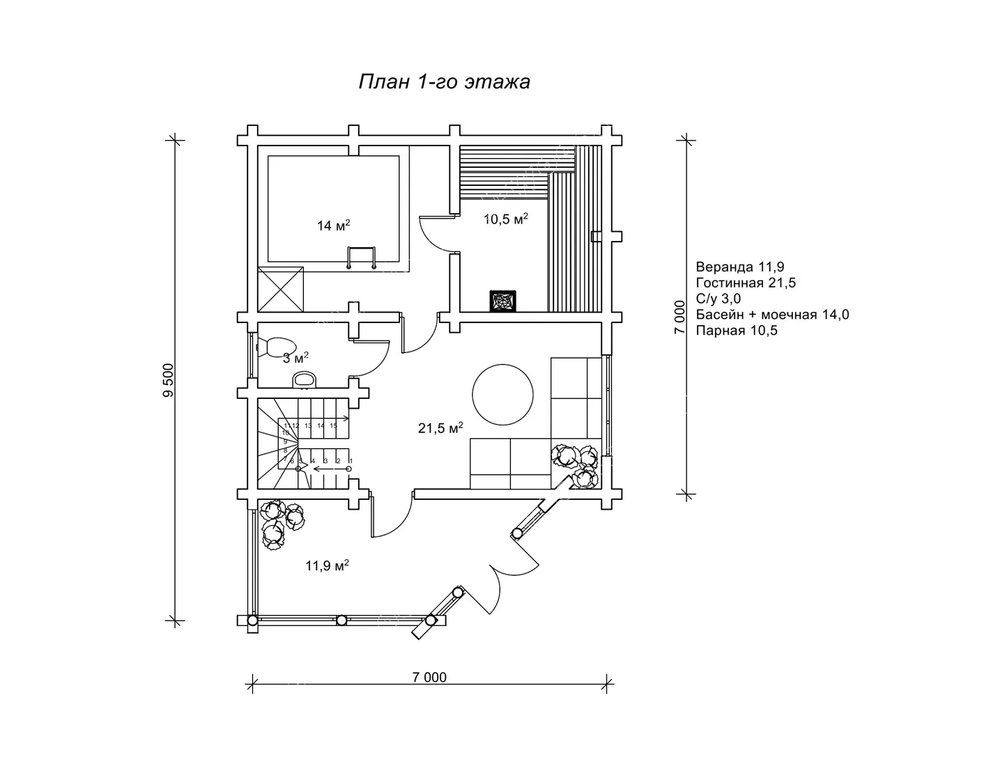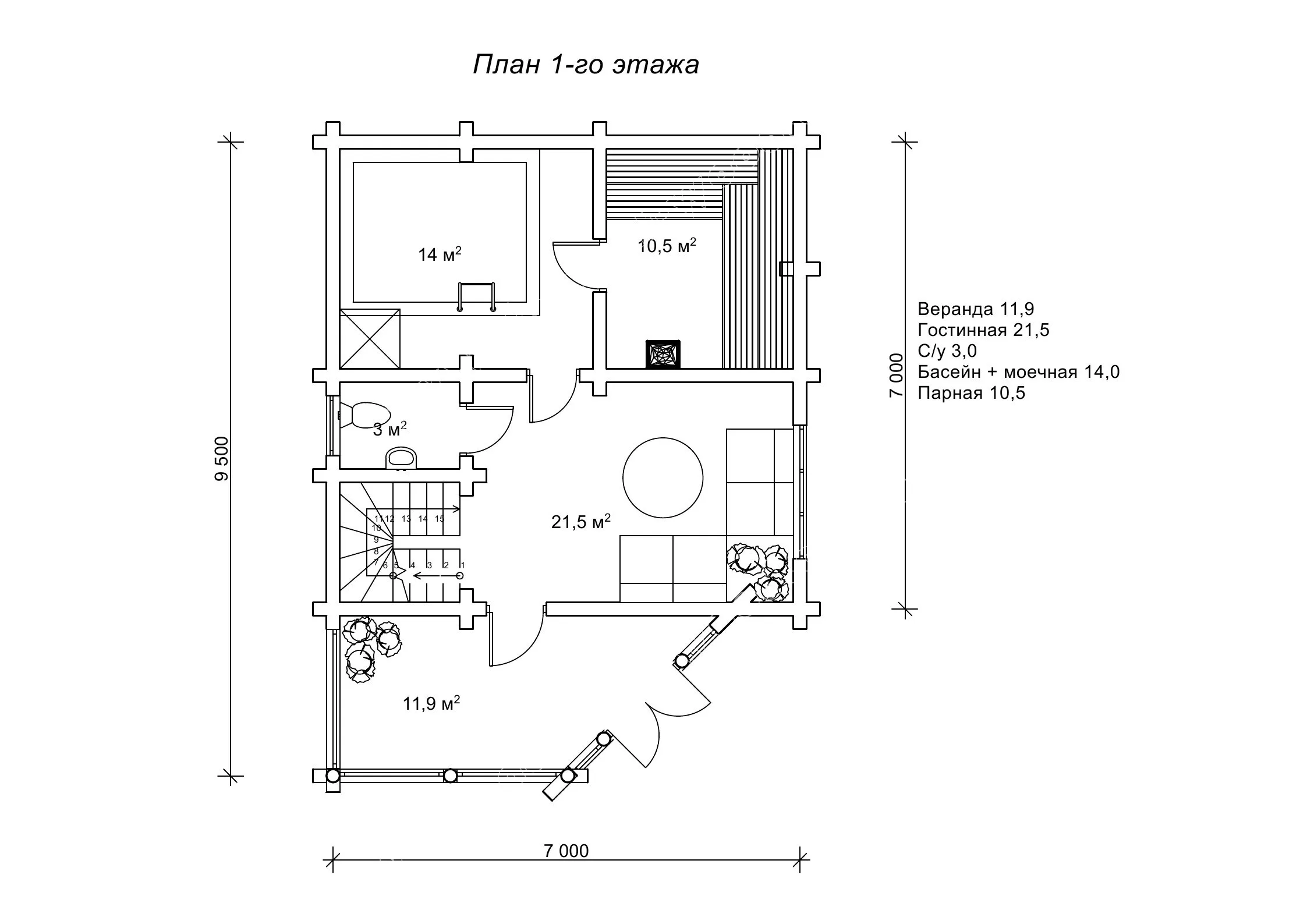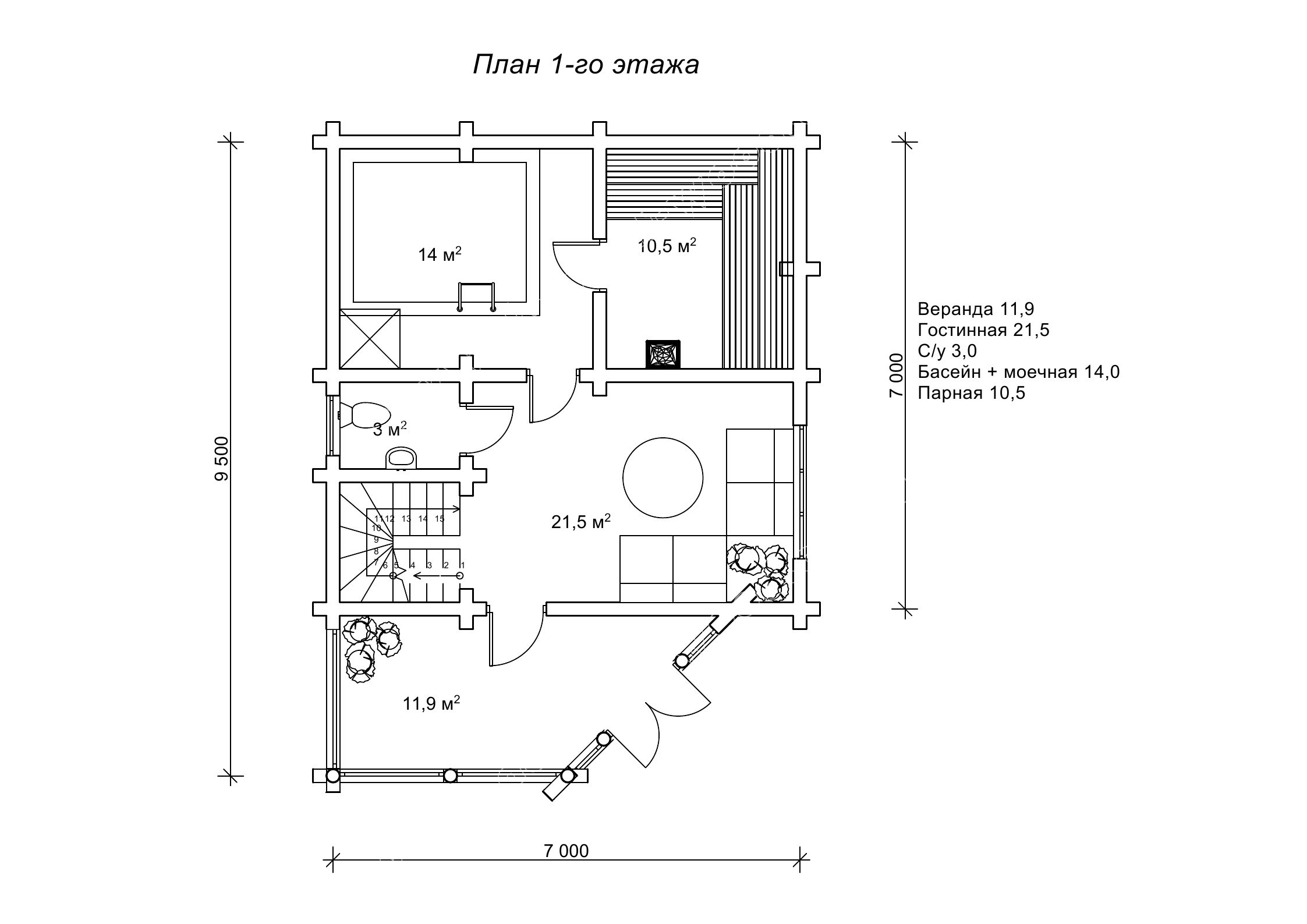 Двоповерхова баня-дача 7 на 9,5 м з більярдною - «Оазис»