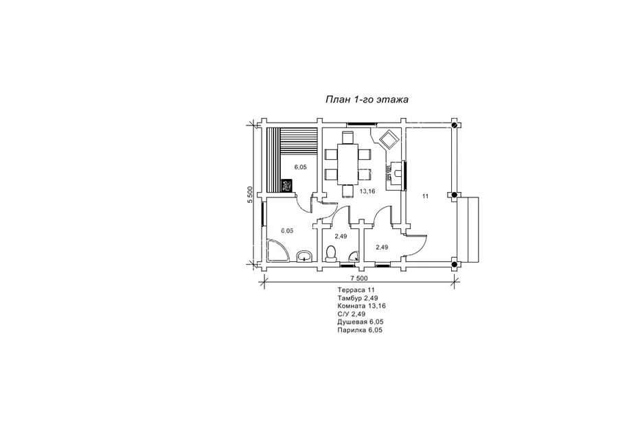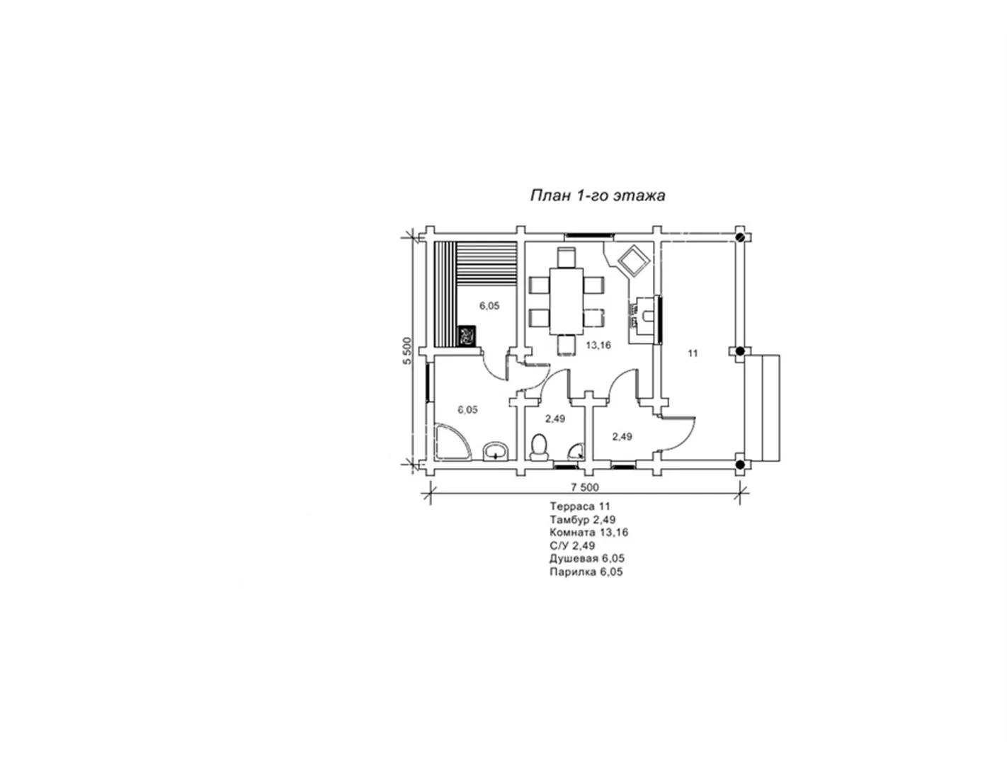 Двоповерхова лазня будинок 5,5х7,5 м проект з бруса - «Привал»