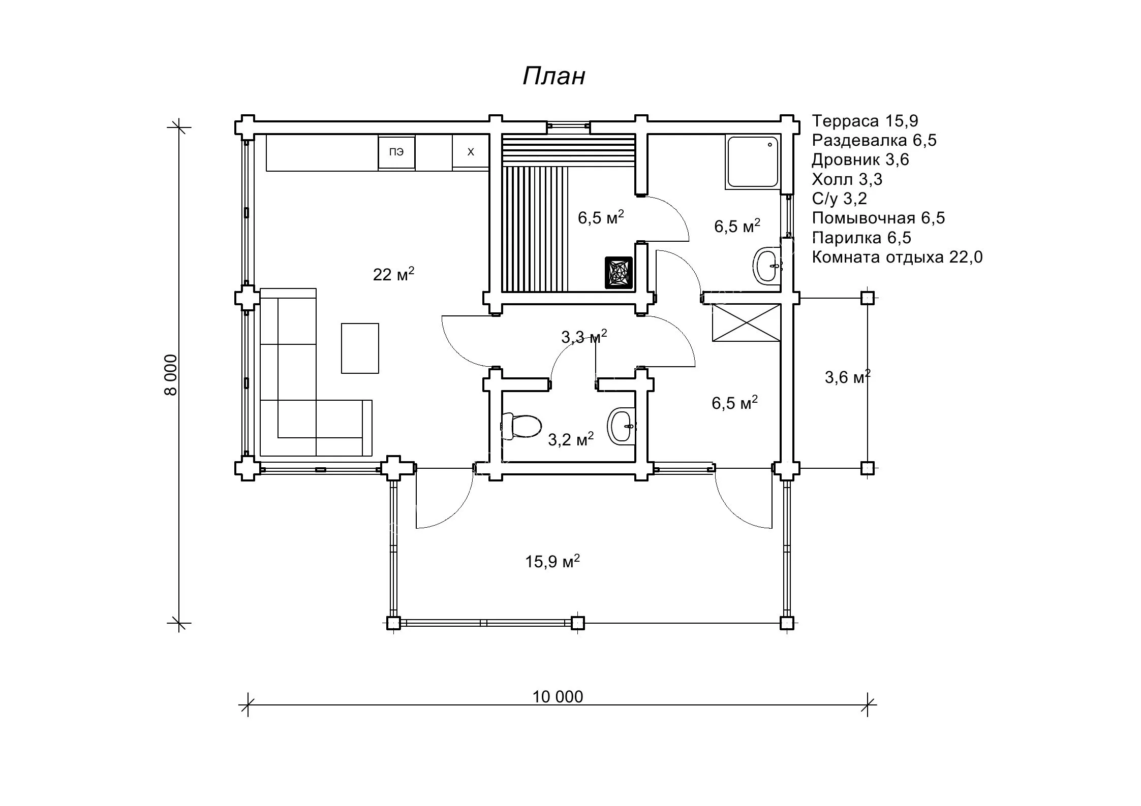 Лазня з дерева 8 на 10 м - «Тандіс»