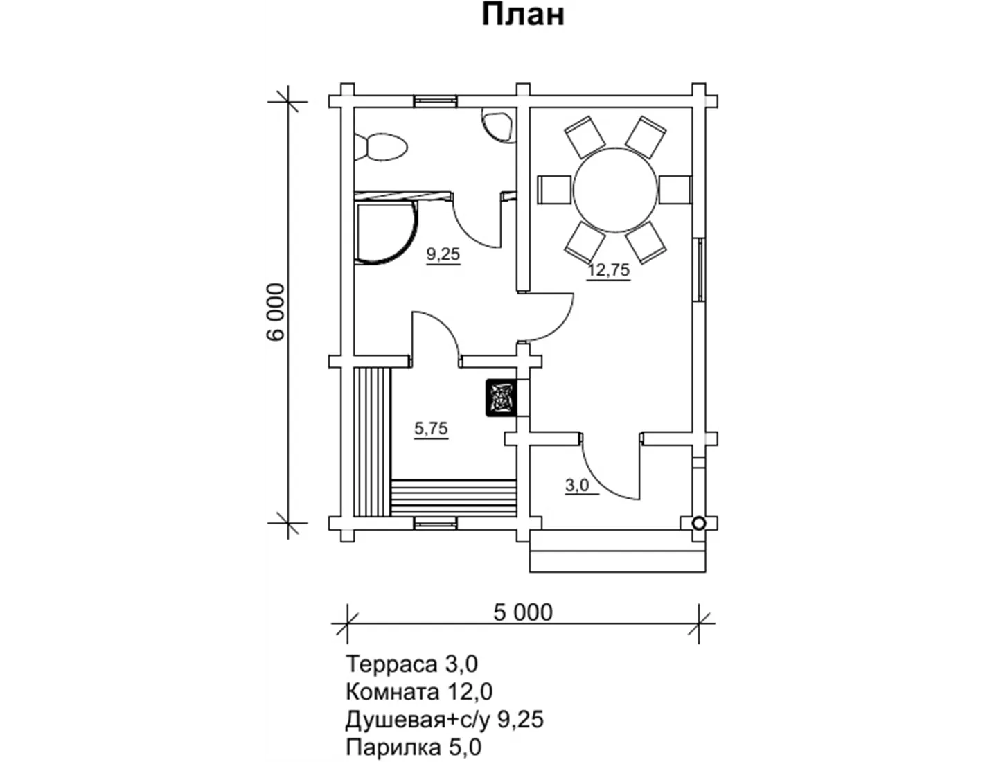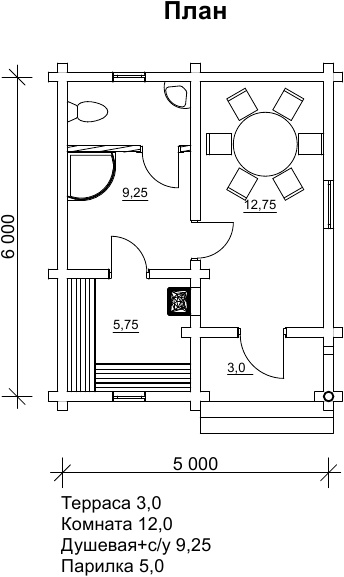 Проект пропонованої лазні характеризується компактними розмірами забудови 5 на 6 м, але в ньому, звичайно ж, передбачено наявність кімнати відпочинку, заплановані парна і душова. Це просто чудове місце для відпочинку сім’єю і веселою компанією в будь-який час року. Крім хорошої функціональності, лазня Торі характеризується вигідною економічністю, її можна побудувати в мінімальні терміни і за доступну вартість. Якщо використовувати цей проект для бізнесу, банька Торі може стати об’єктом для вигідного вкладення інвестицій і отримання прибутку.
