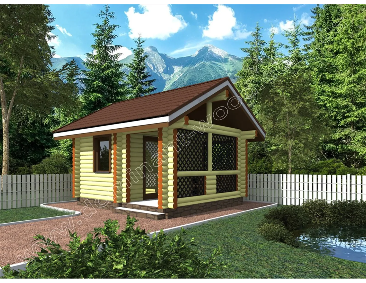 Проект лазні зі зрубу «Майстерок» містить мінімум приміщень, необхідних для повноцінного банного відпочинку: парилка, мийна і тераса. Просторе приміщення парилки на 5 м2 дозволяє з комфортом попаритися компанії з чотирьох чоловік, а потім вийти на терасу, щоб подихати свіжим повітрям. Максимум простоти і мінімум оснащення дозволяють проекту баньки «Майстерок» стати оптимальним вибором для прибудинкової території для таких будиночків як Маленька дача 4,6 на 6,5 м — «Рубін» або Готовий двоповерховий будинок з дерева 7х6 м з ганком — «Вермут» . Проект лазні зі зрубу «Майстерок» також вдало доповнить територію бази відпочинку і підвищить престиж і популярність готельного комплексу.