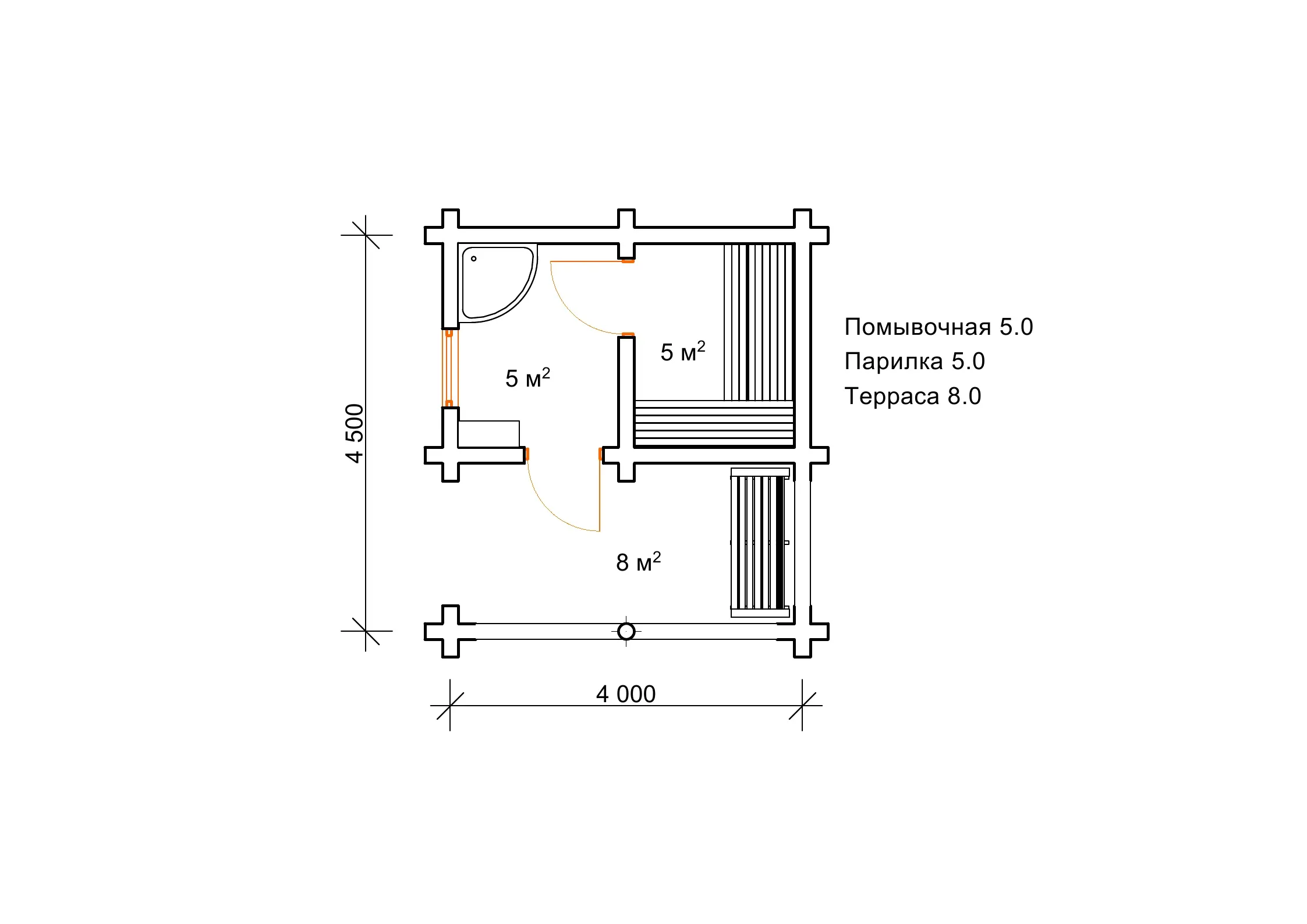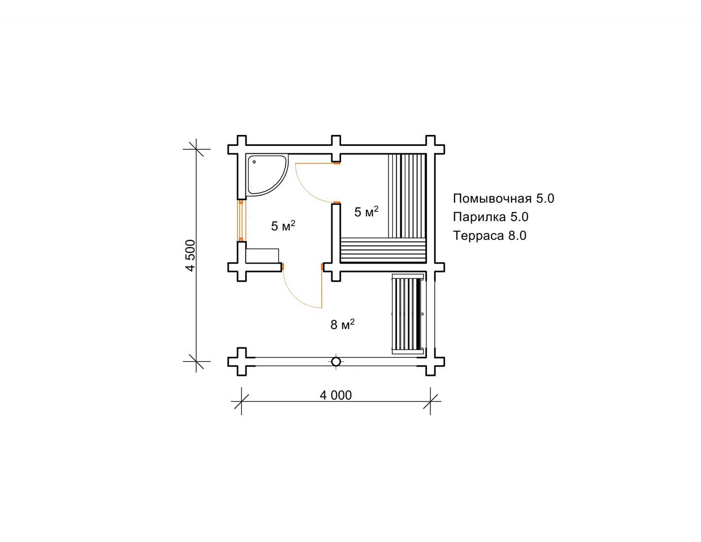Планування лазні зі зрубу 4,5 на 4 м