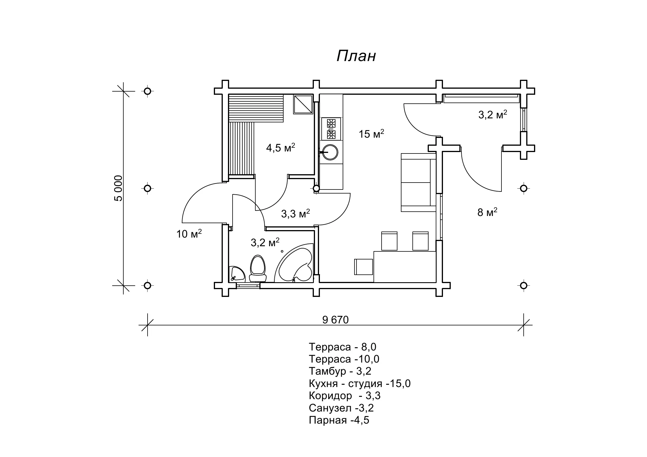Будівництво лазні «Гратен2», площа 48,35 м²