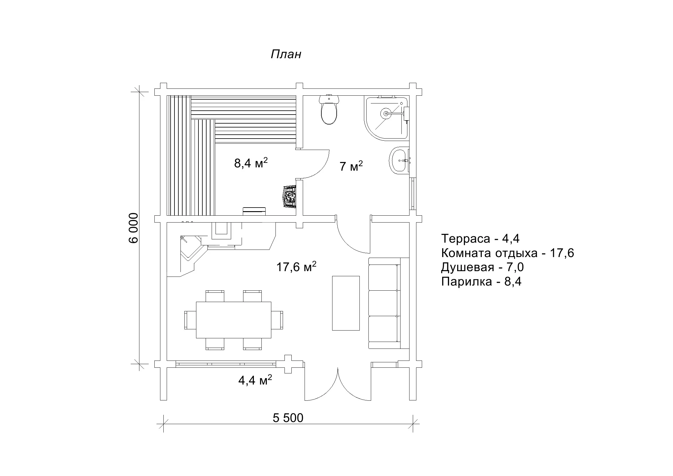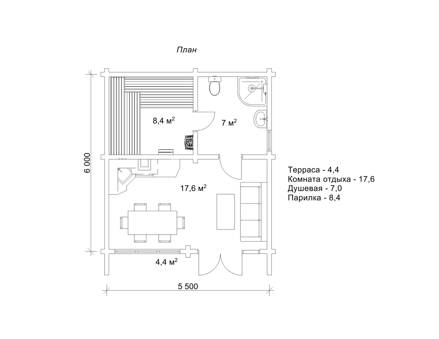 Проект лазні 6х5,5 м «Елінора» з сухого брусу