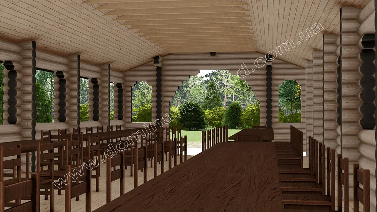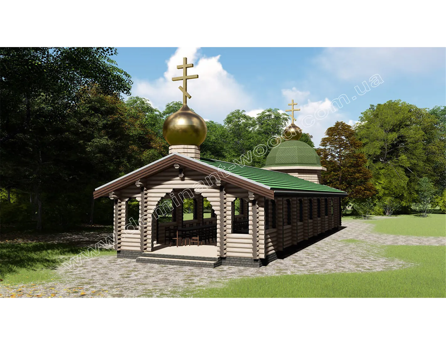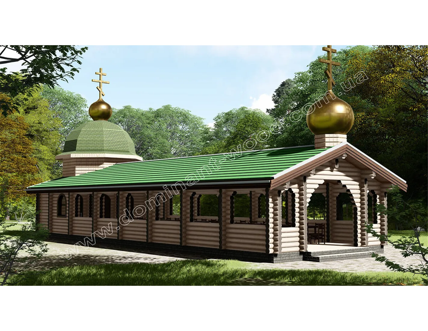 Проект «Свято-Духовської Трапезної» виконаний з оциліндрованих колод власного виробництва «Домінант». Призначення проекту «Свято-Духовської Трапезної» - спільний прийом їжі, проведення богослужінь, а також зборів парафіян. Дизайн трапезної максимально відкритий і нагадує вузький, довгастий, дерев’яний павільйон. При вході і в кінці будови трапезна увінчана зеленими куполами. У православ’ї зелений колір уособлює образ Святої Трійці і вважається кольором Святого Духа. При проектуванні сакральних споруд архітектор «Домінант» завжди дотримується церковних канонів, щоб в наших роботах дотримувався справжній зв’язок між вищим духовним світом і засадами суспільства.