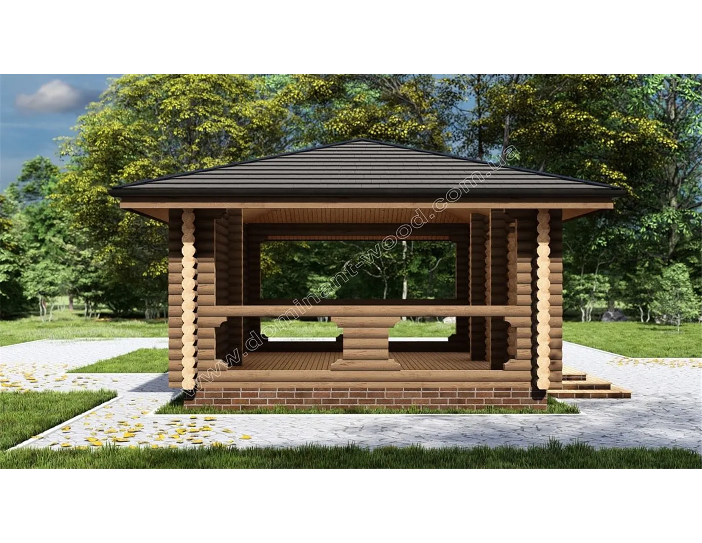 Класична, простора альтанка зі зрубу «Журавушка» створена, щоб стати окрасою навколишнього ландшафту. Ми рекомендуємо цю розкішну дерев’яну альтанку господарям готельно-ресторанних комплексів і заміських кафе, як проект для розширення функціональності закладу і підвищення його престижу. Краса в чистому вигляді найкраще проявляється в простих, класичних формах, властивих нашій «Журавушці». Це дуже приваблива і разом з тим конструктивно проста будова, здатна виконати безліч функцій і привнести на вашу ділянку затишок і організованість.